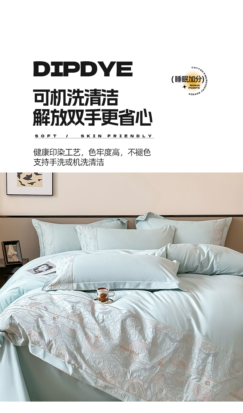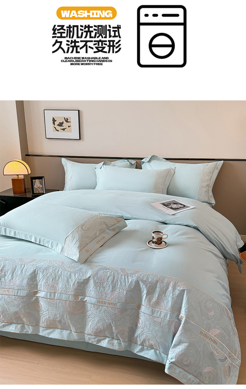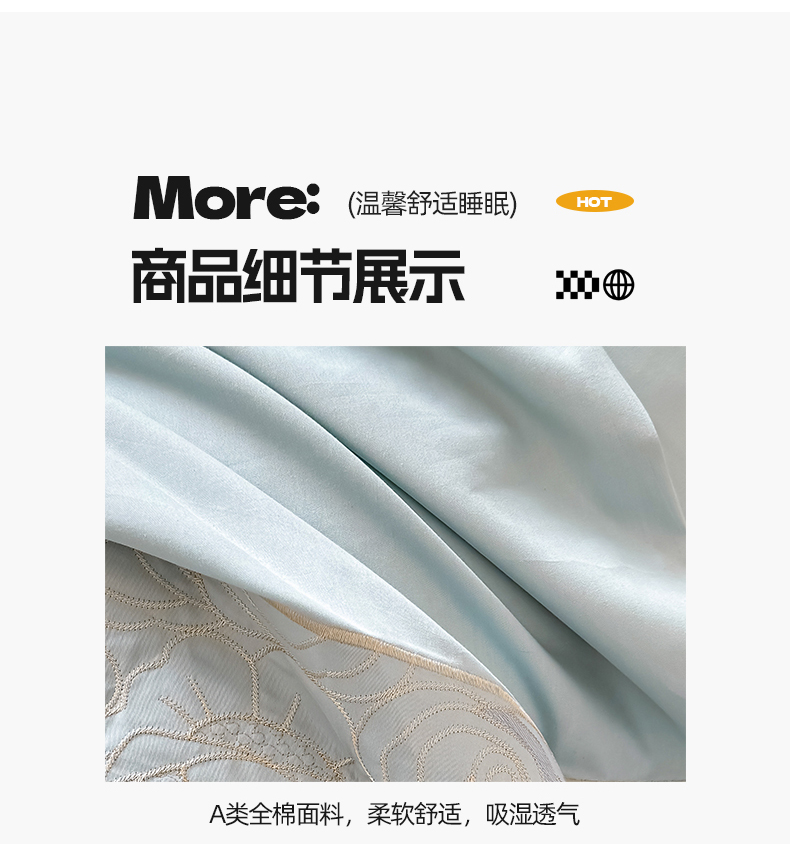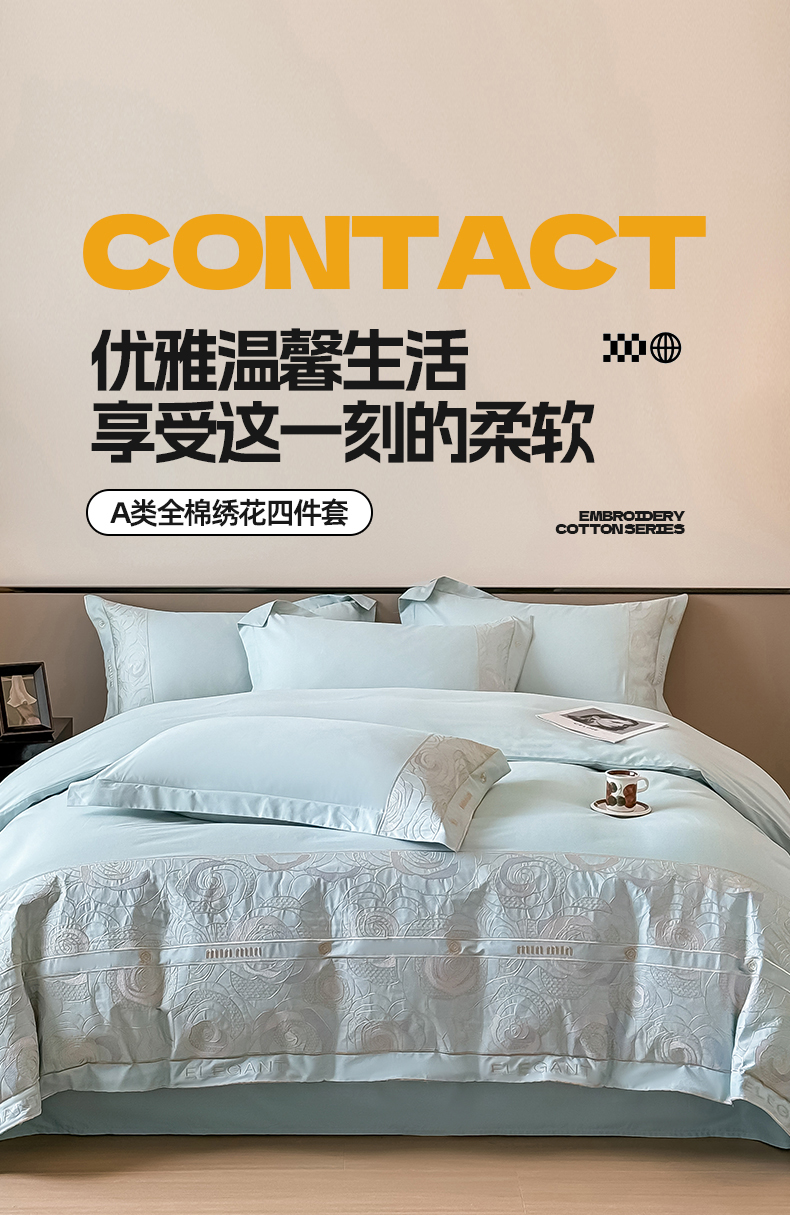 商品名称:懒猫家纺 2024新款【瑾雅系列】全棉绣花套件四件套 瑾雅-海蓝