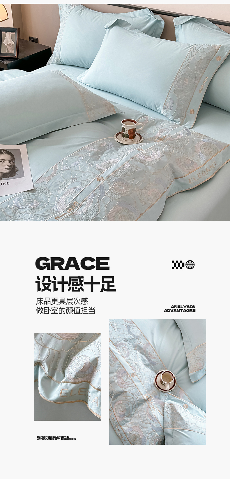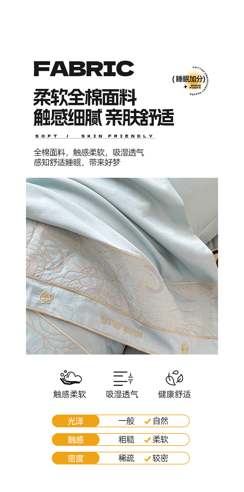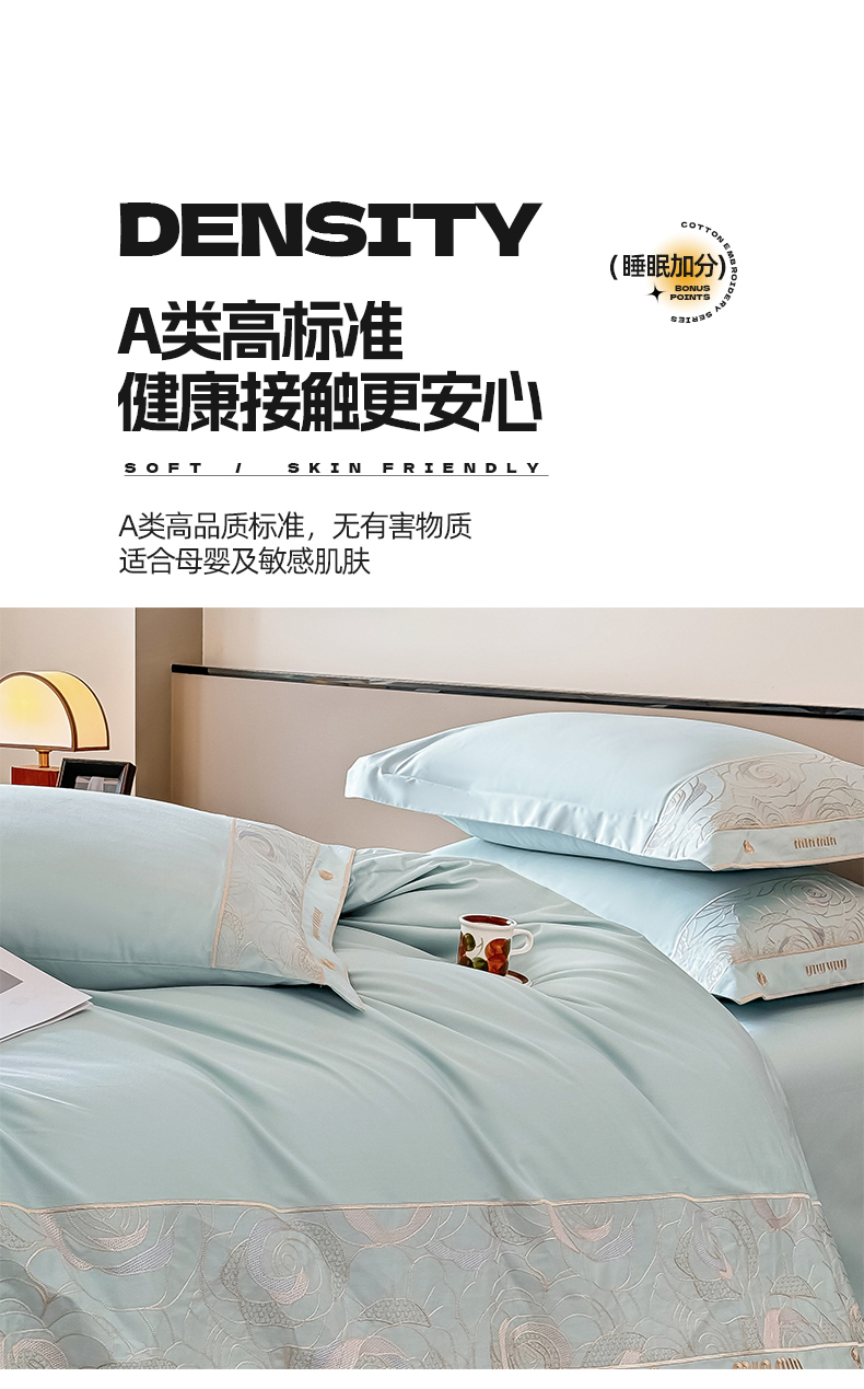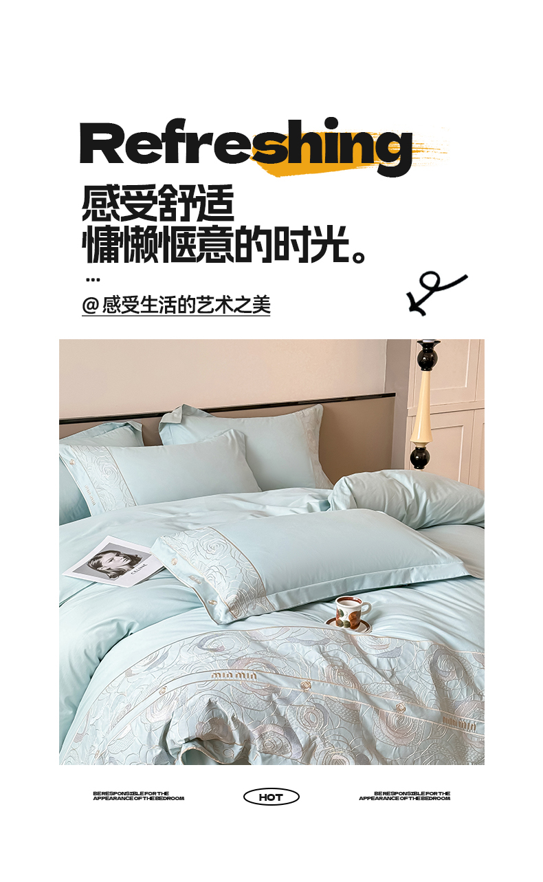 商品名称:懒猫家纺 2024新款【瑾雅系列】全棉绣花套件四件套 瑾雅-海蓝