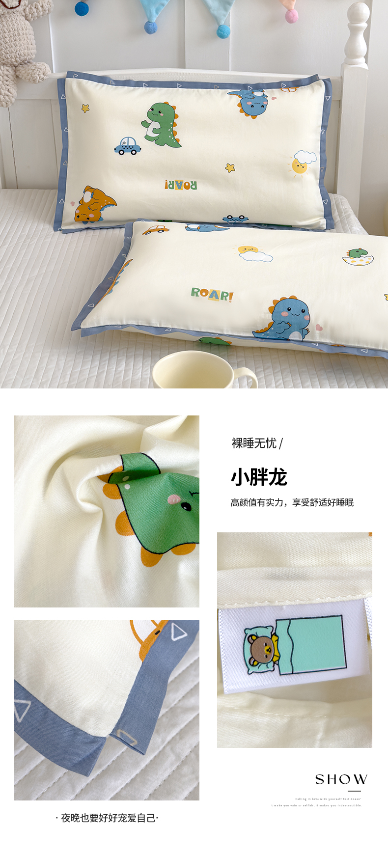 商品名称:2024新款A类133x72铂金全棉枕套枕头枕芯七彩童年系列 枕套+枕芯-棚拍图 小胖龙