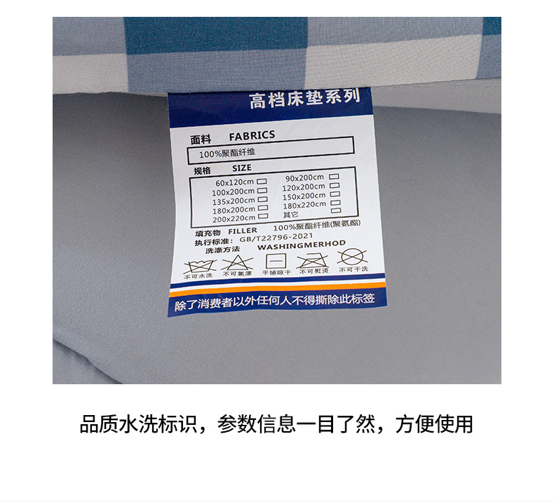 商品名称:(总)蓝冰家纺 2024新款新疆棉花水洗棉床褥-大床