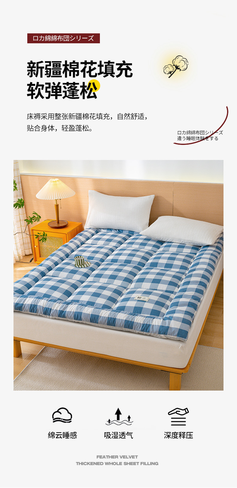 (总)蓝冰家纺 2024新款新疆棉花水洗棉床褥-大床