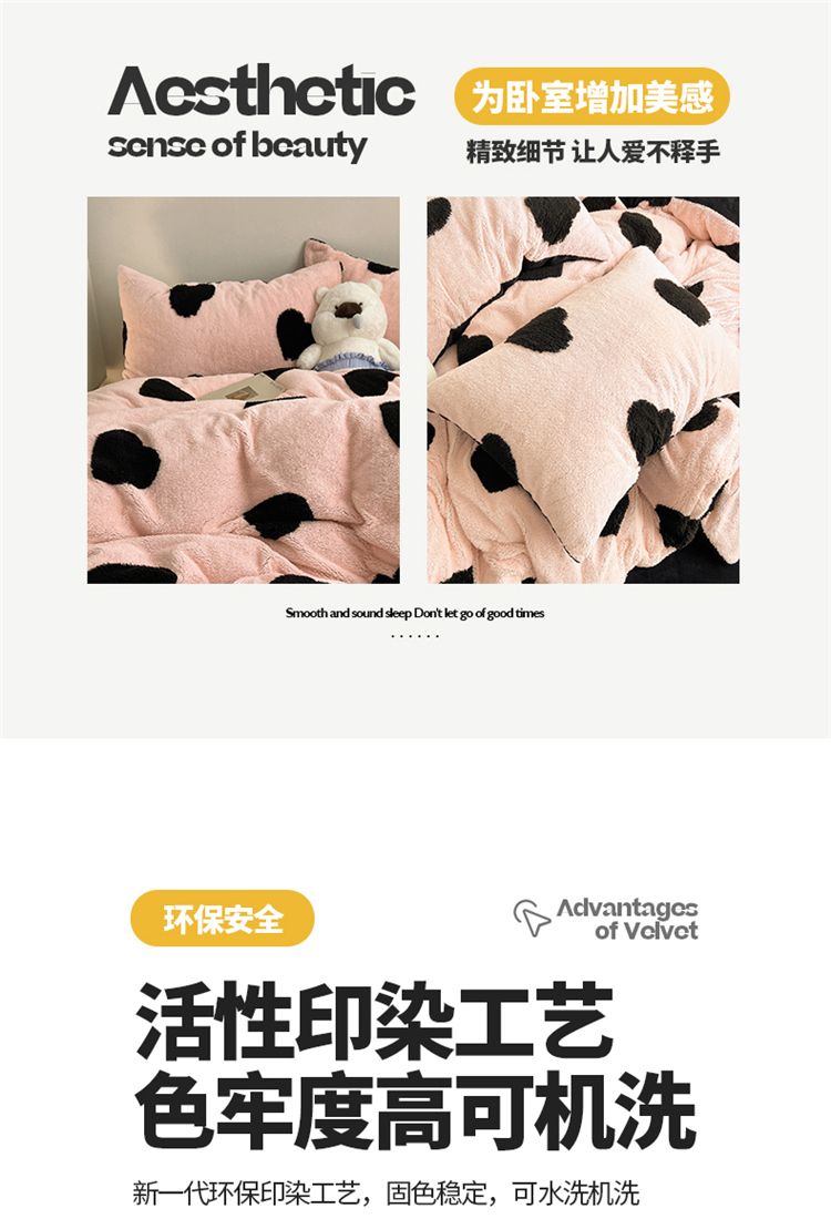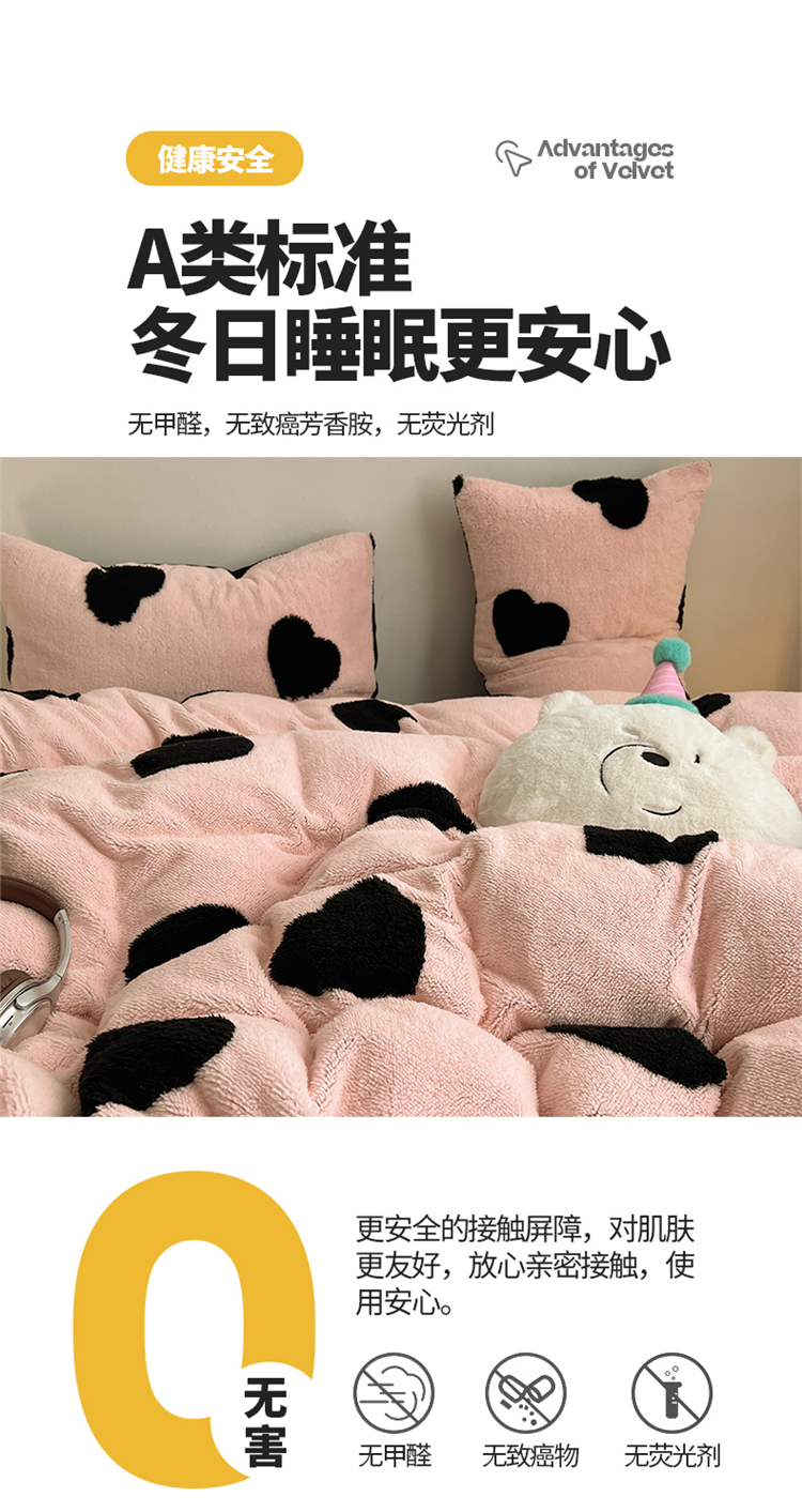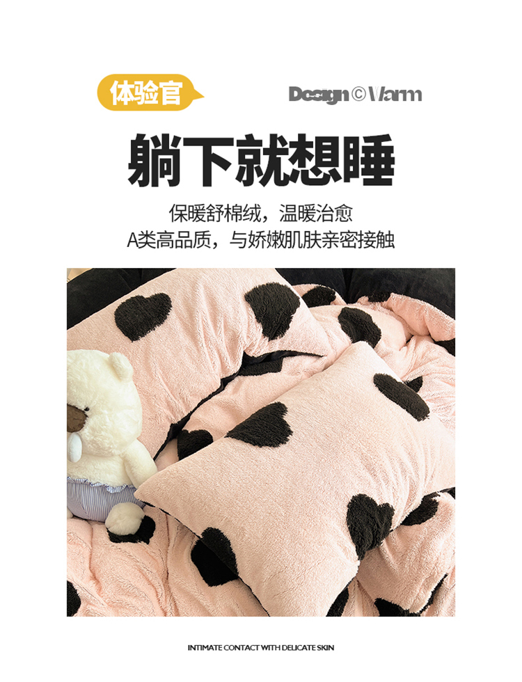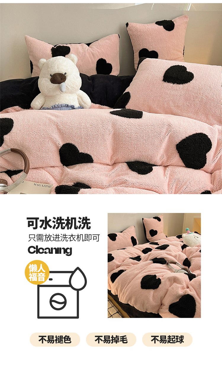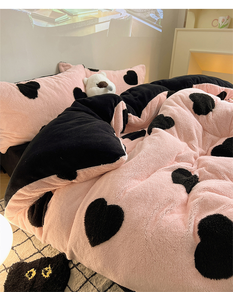 当前位置: 91家纺网 > 商品网购 > 床品套件 > 四件套 > 牛奶绒四件套 > 2024新款A类加厚色纱舒舒绒提花蝴蝶结爱心少女舒棉绒牛奶绒系列四件套 舒棉绒提花-粉墨爱心