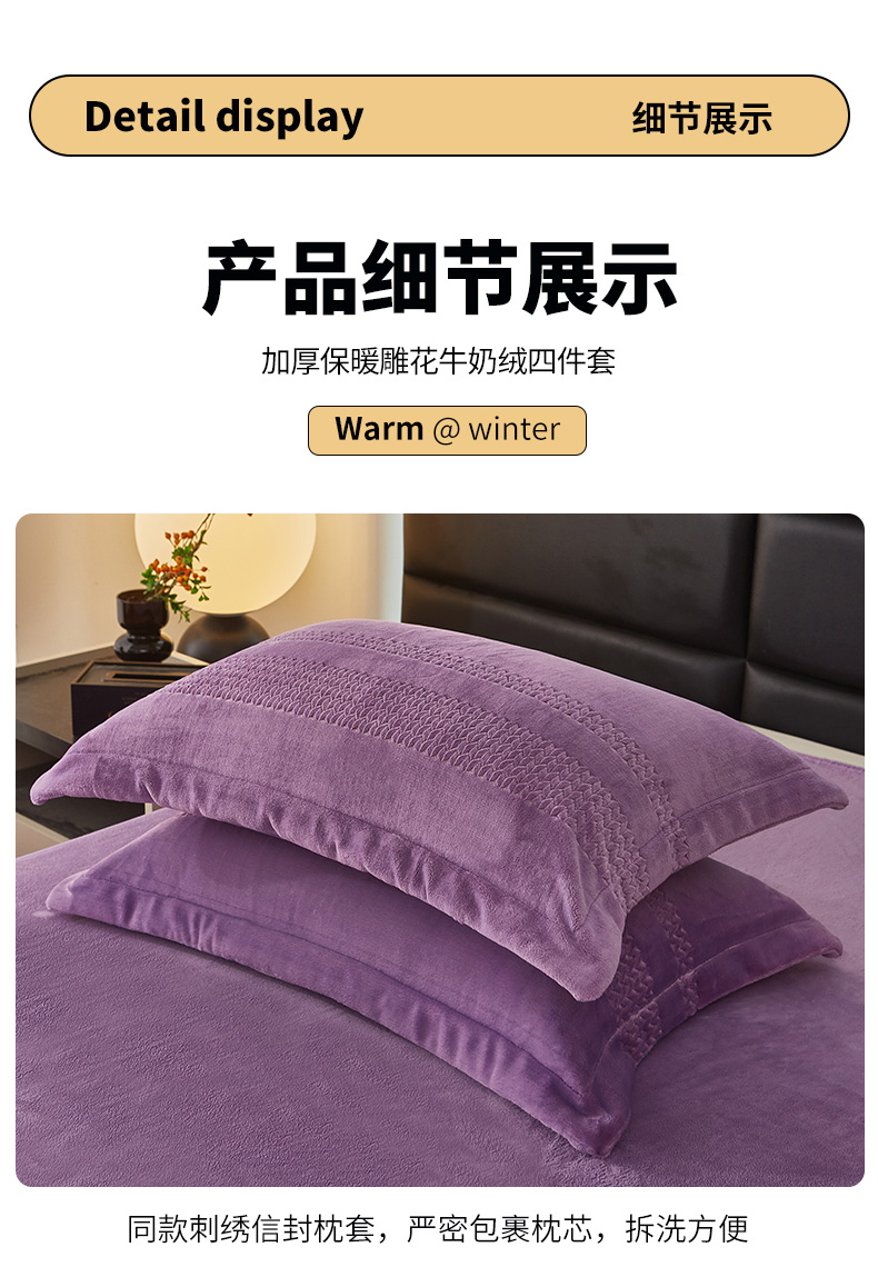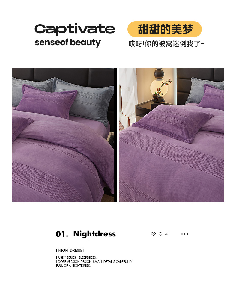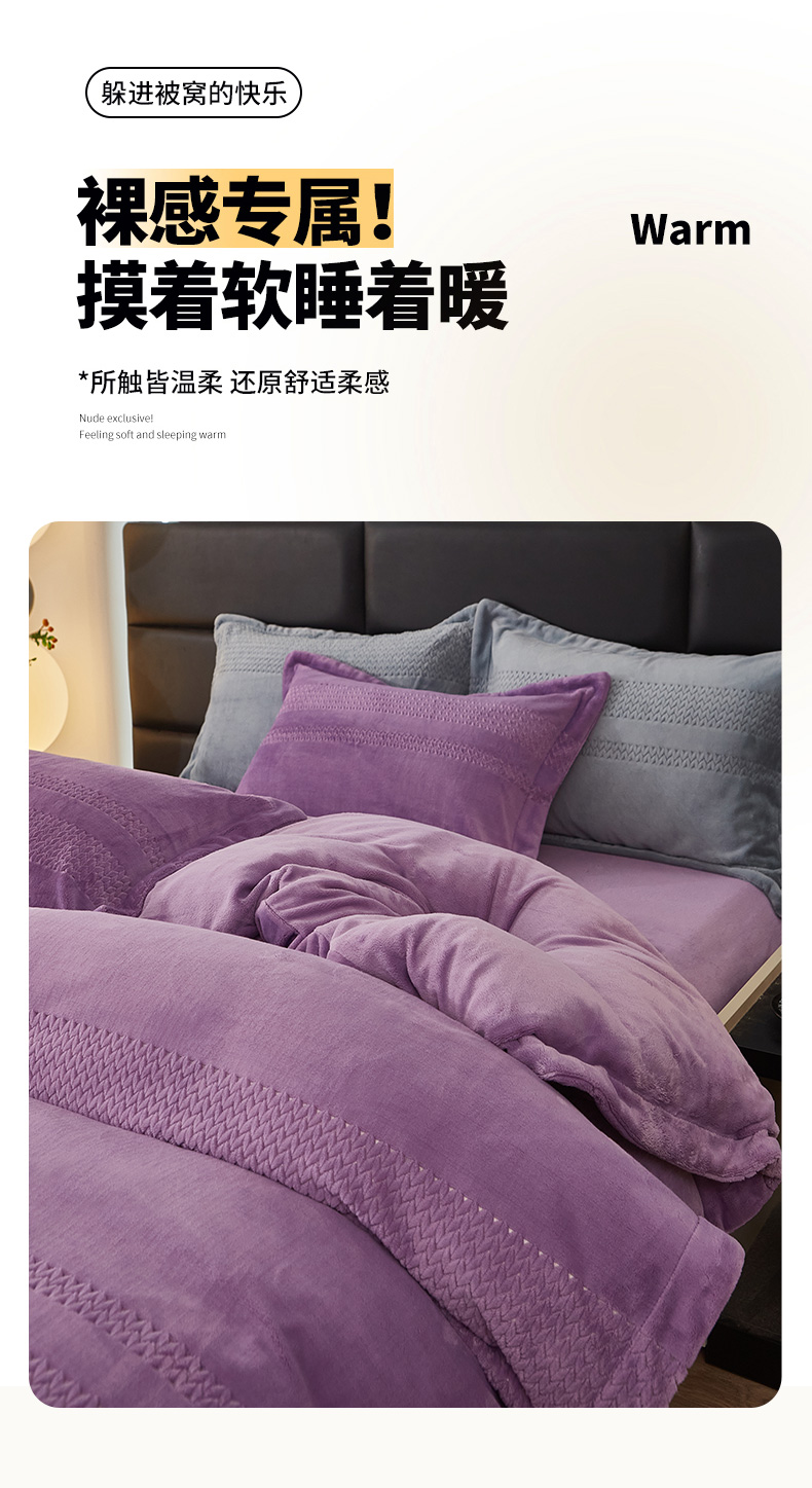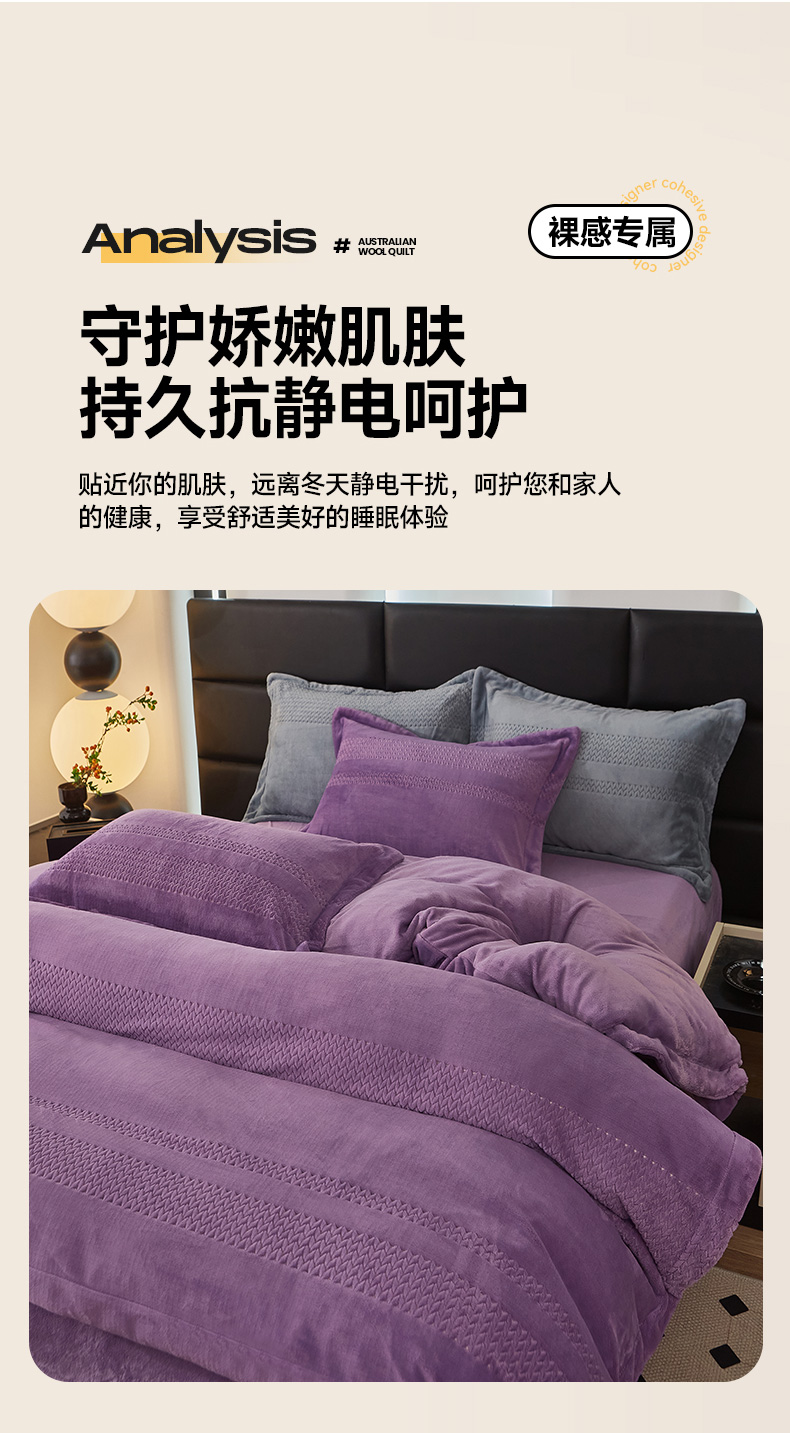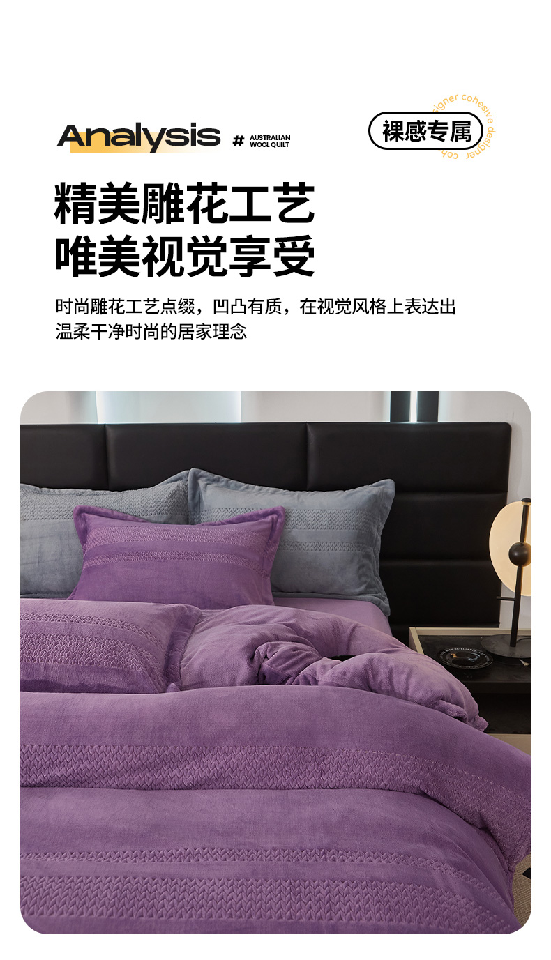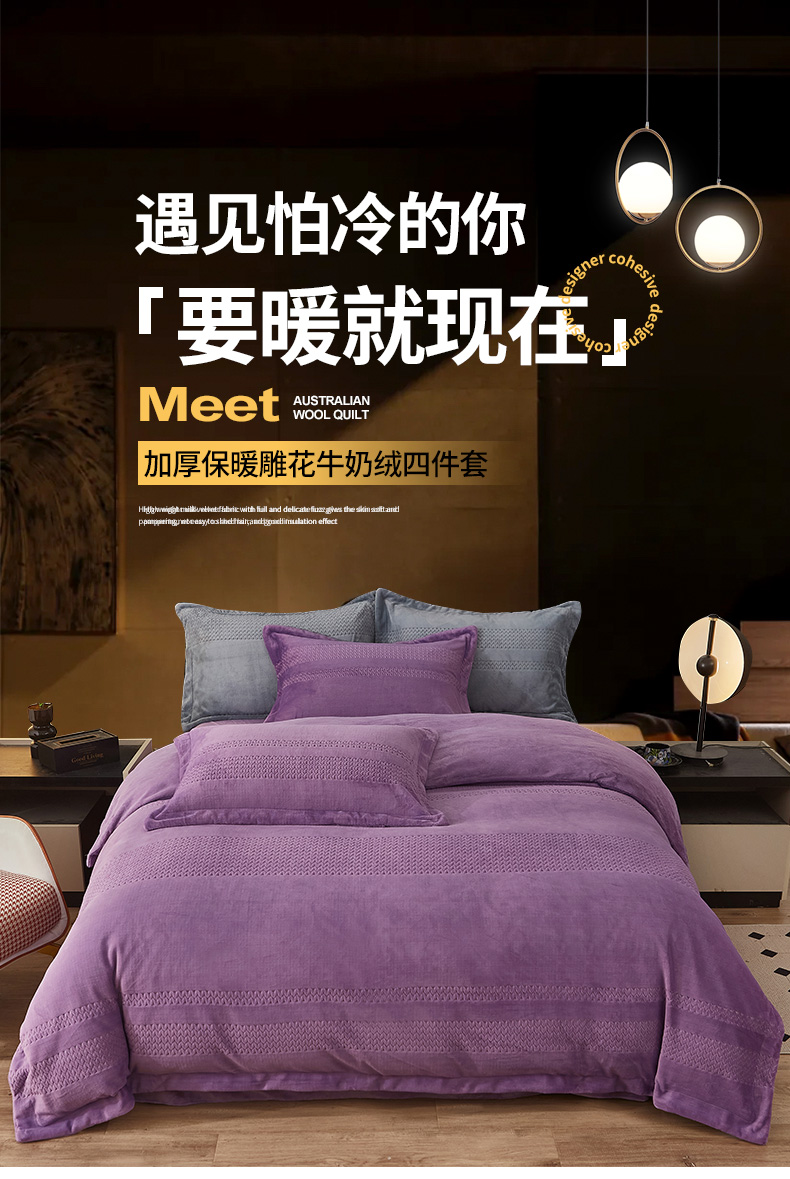 商品名称:绣女坊 2024新款雕花绒-大麦四件套 大麦-紫色