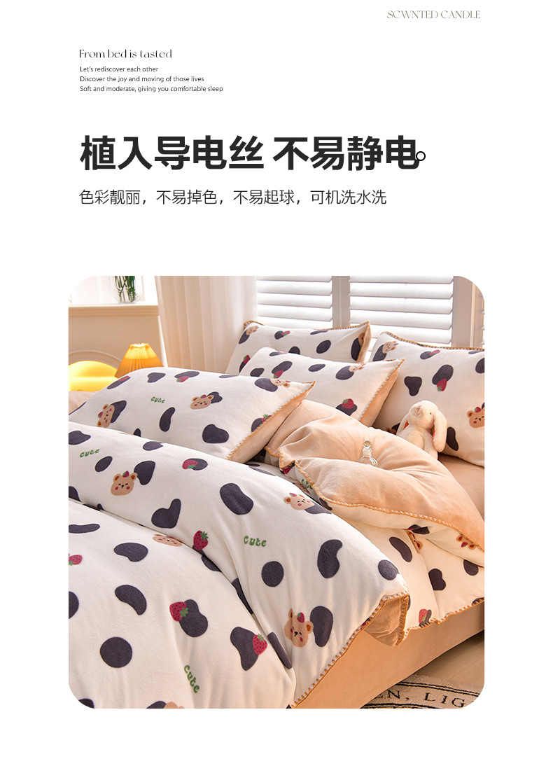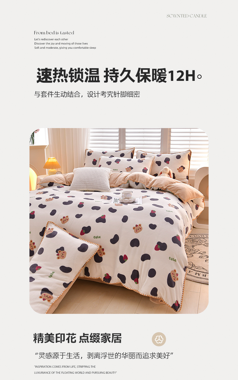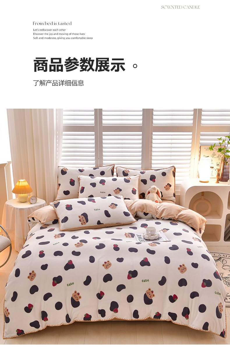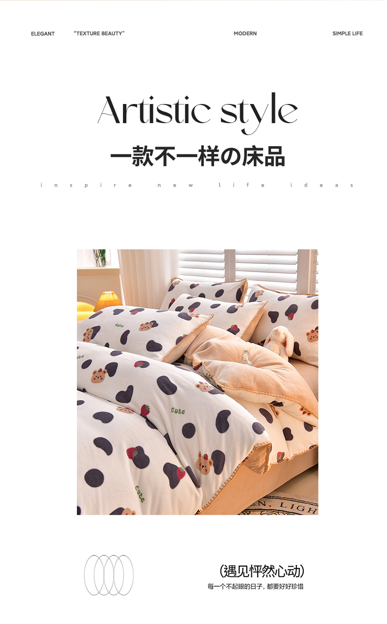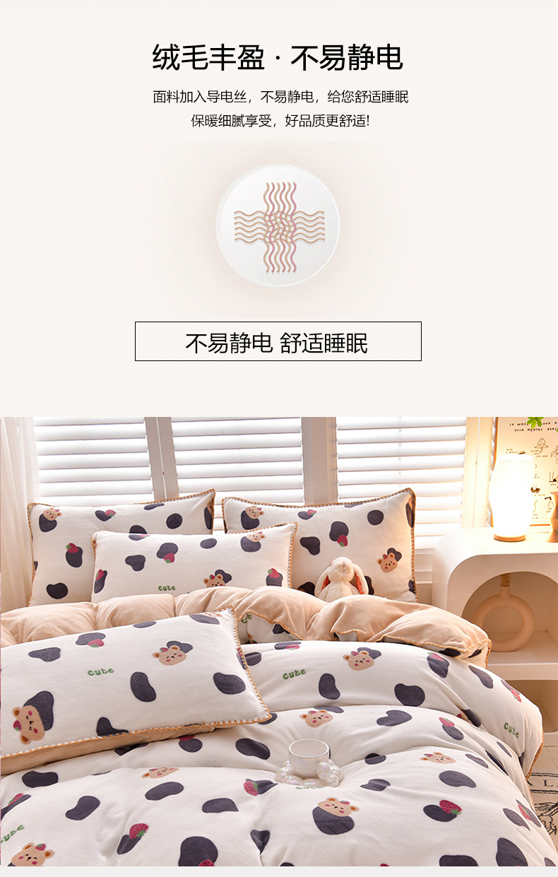 当前位置: 91家纺网 > 商品网购 > 床品套件 > 四件套 > 牛奶绒四件套 > 菡宝 2024新款高克重印花贝壳边牛奶绒四件套 奶牛小熊
