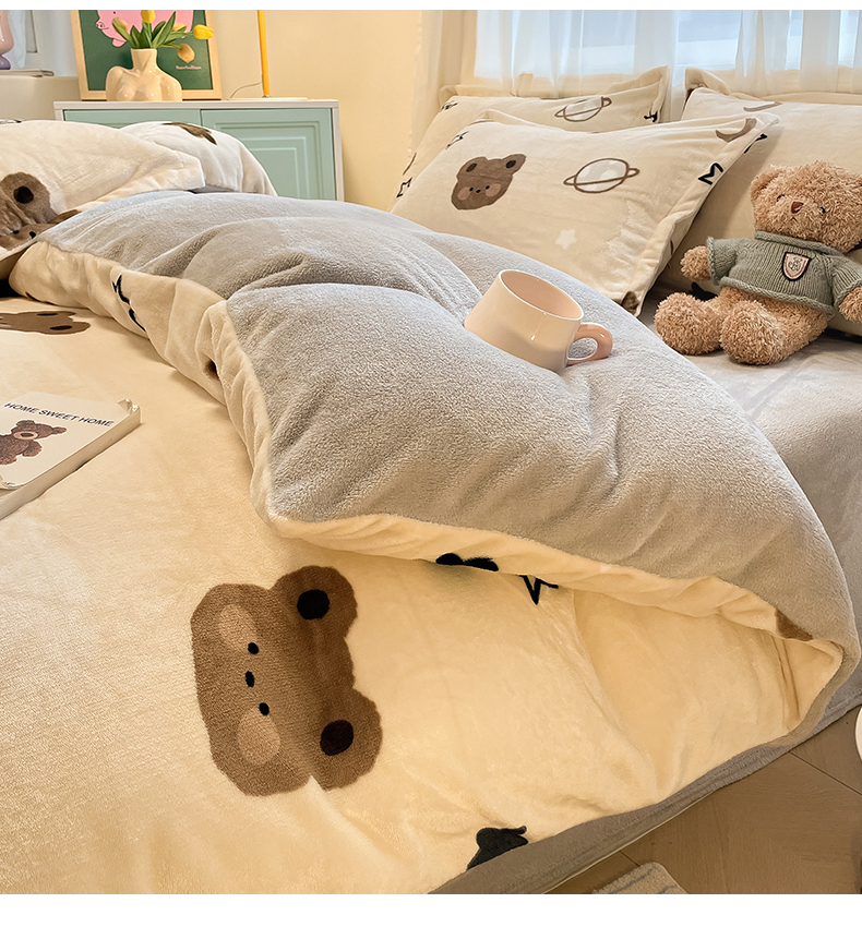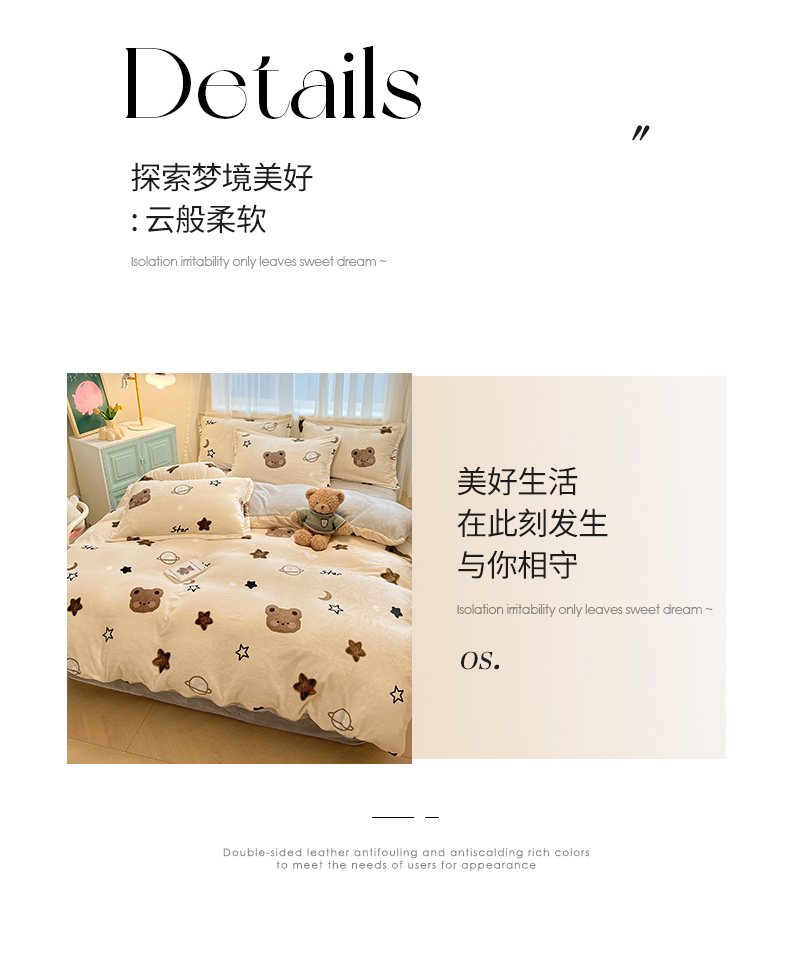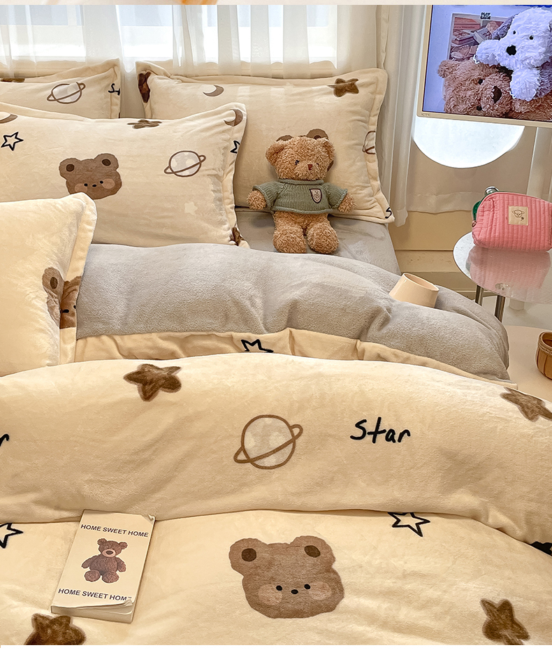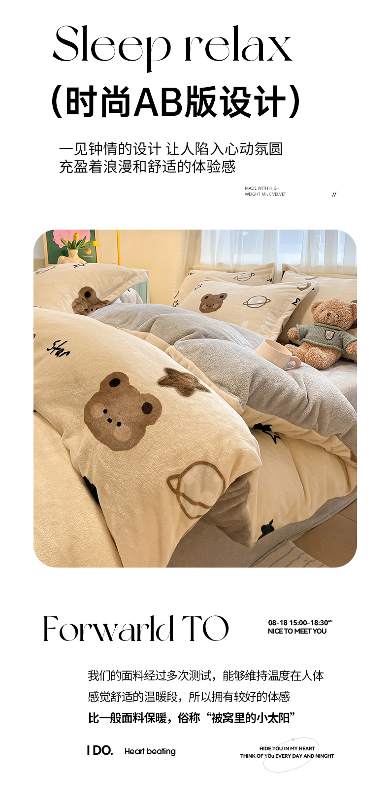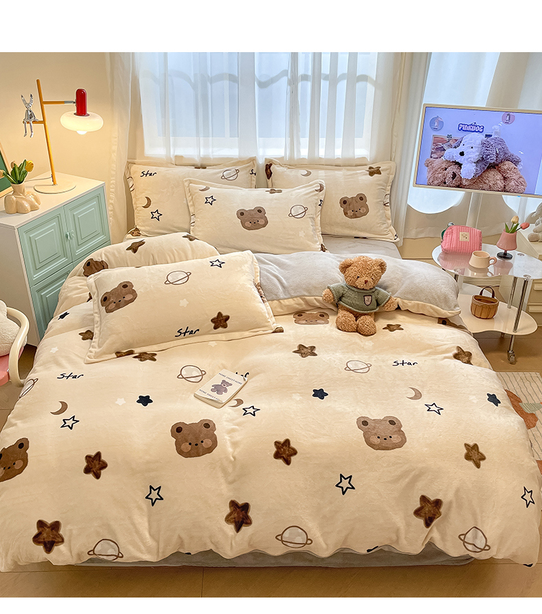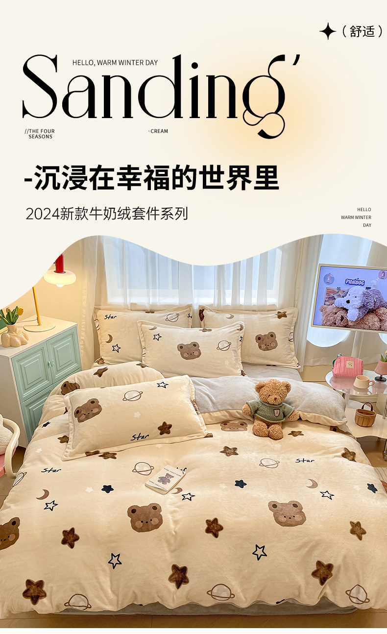 当前位置: 91家纺网 > 商品网购 > 床品套件 > 四件套 > 牛奶绒四件套 > 2024新款高克重牛奶绒四件套-夜景 星际小熊