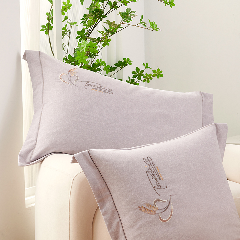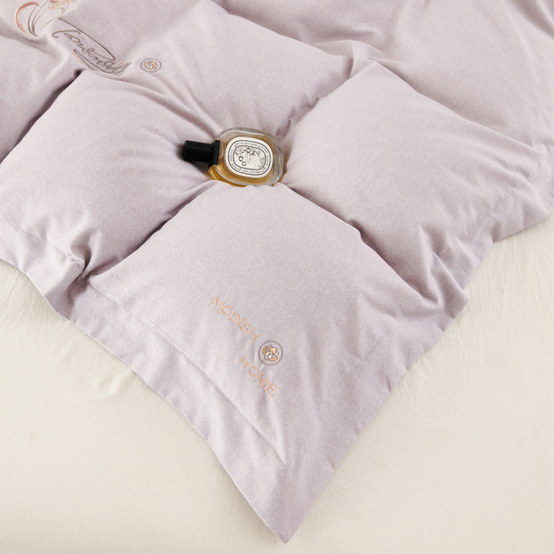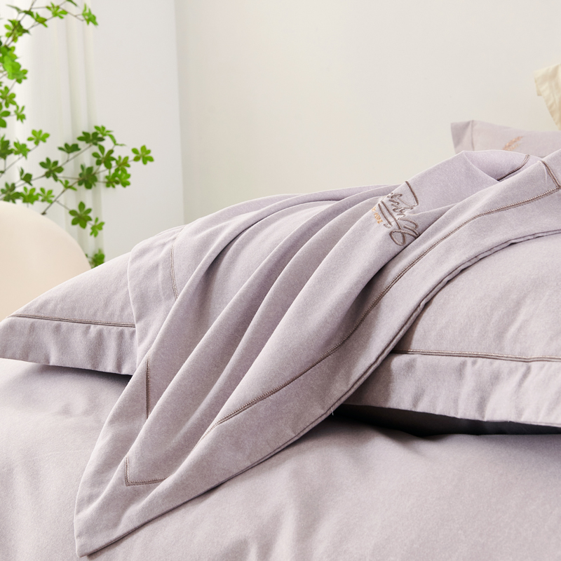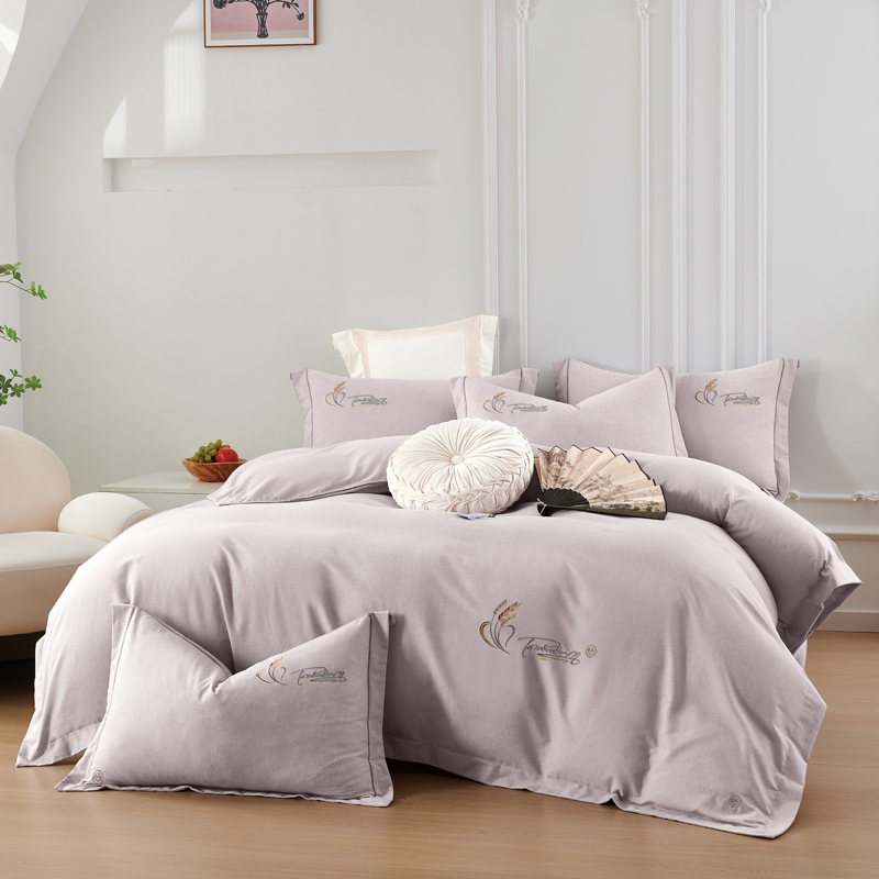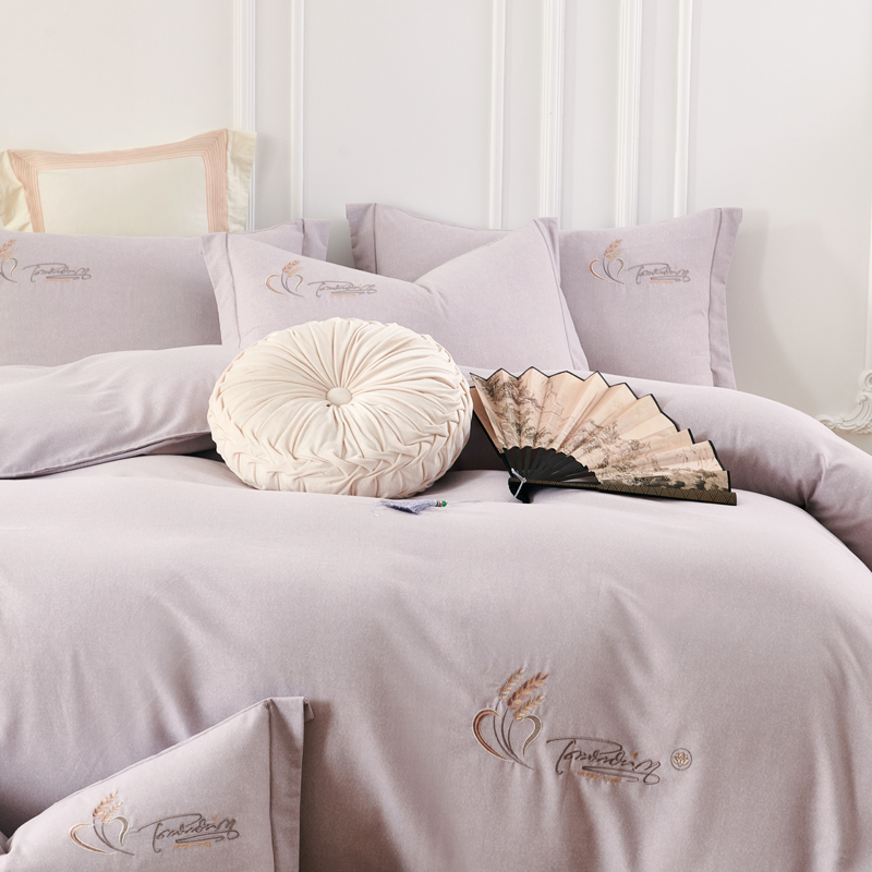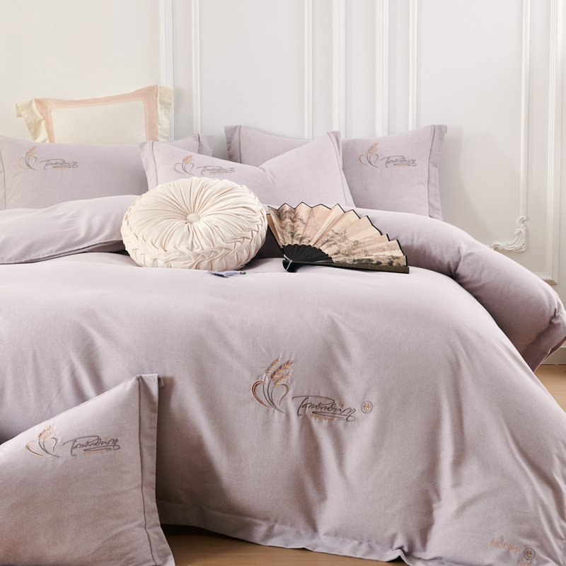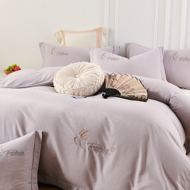U品汇 2024新品生态加厚长绒棉纯棉绣花40S全棉磨毛刺绣四件套宽边款 七里香-紫灰