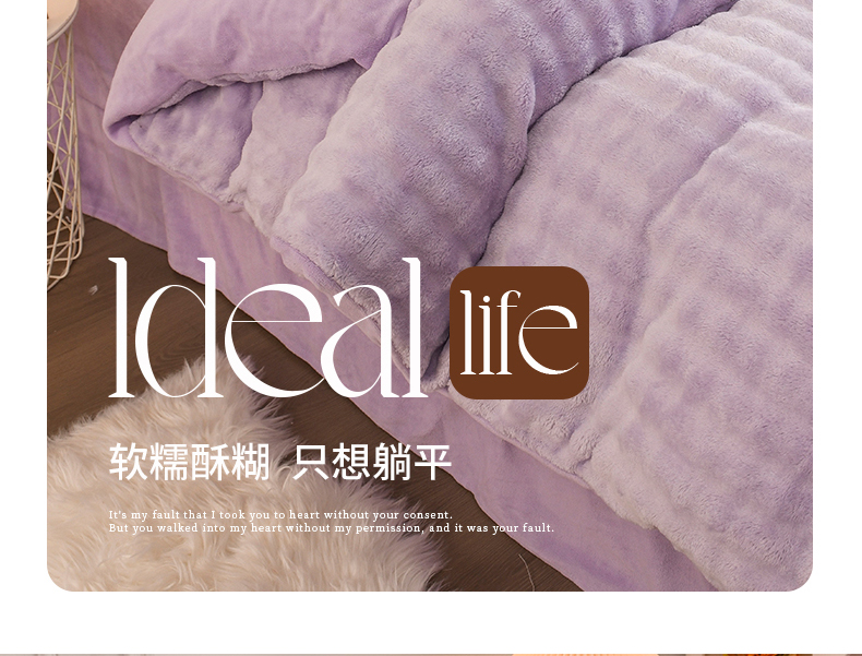 当前位置: 91家纺网 > 商品网购 > 床品套件 > 四件套 > 其它四件套 > 2024新款A类泡泡兔毛绒四件套系列 【泡泡】-芋紫