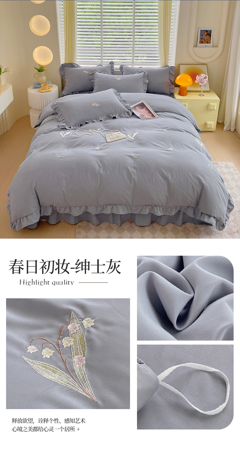 帛缔思 2024新款A类铂金棉水洗棉四件套-春日初妆 春日初妆-绅士灰