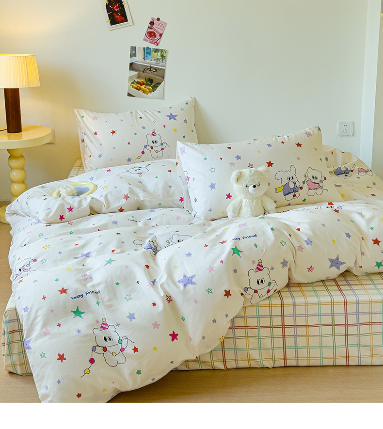 (总)感遇家纺 2025新款小清新甜系全棉四件套,百丽兔,波点小女孩,点点小狗,复古樱桃,格子草莓,格子樱桃,花间牧歌,灰条猫咪,奶绿,宁夏,森林小熊猫,甜心波点