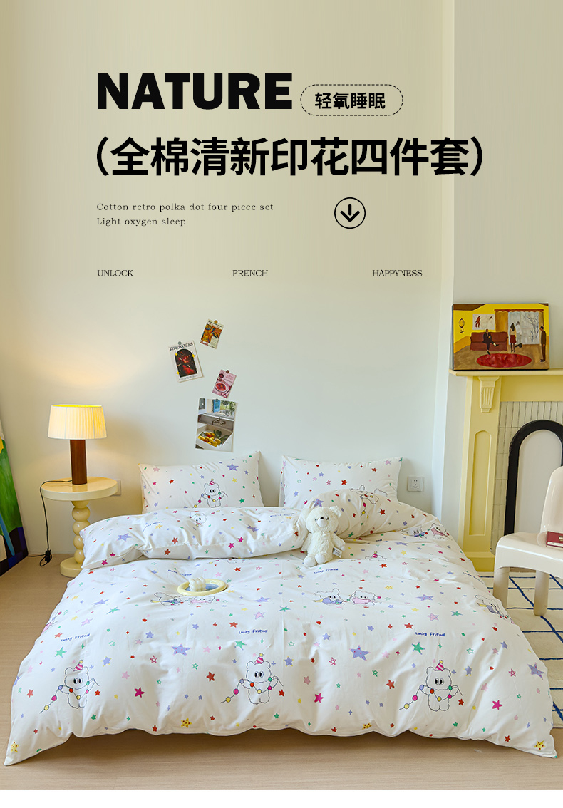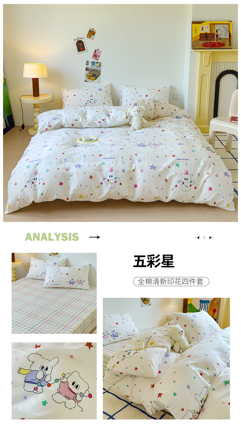 商品名称:感遇家纺 2024新款全棉印花四件套 五彩星