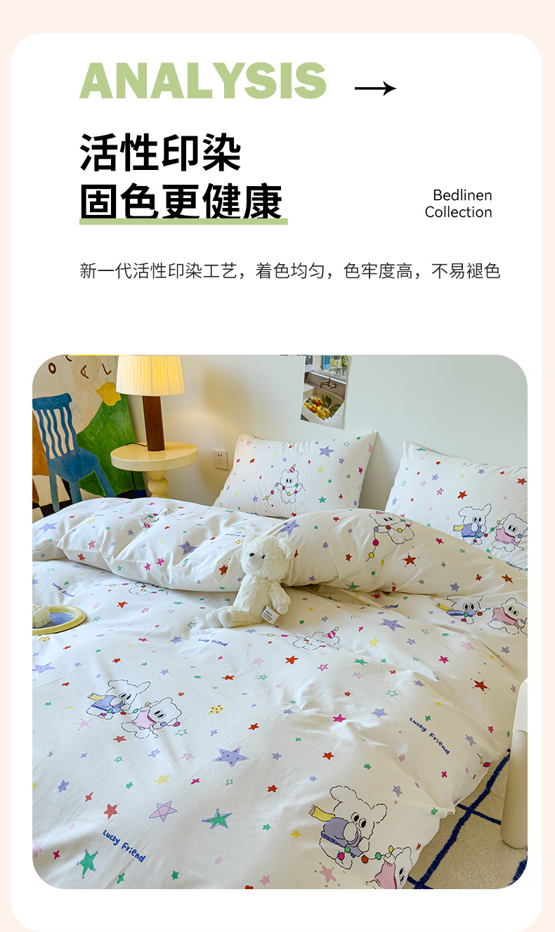 感遇家纺 2024新款全棉印花四件套 五彩星