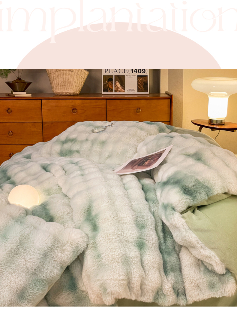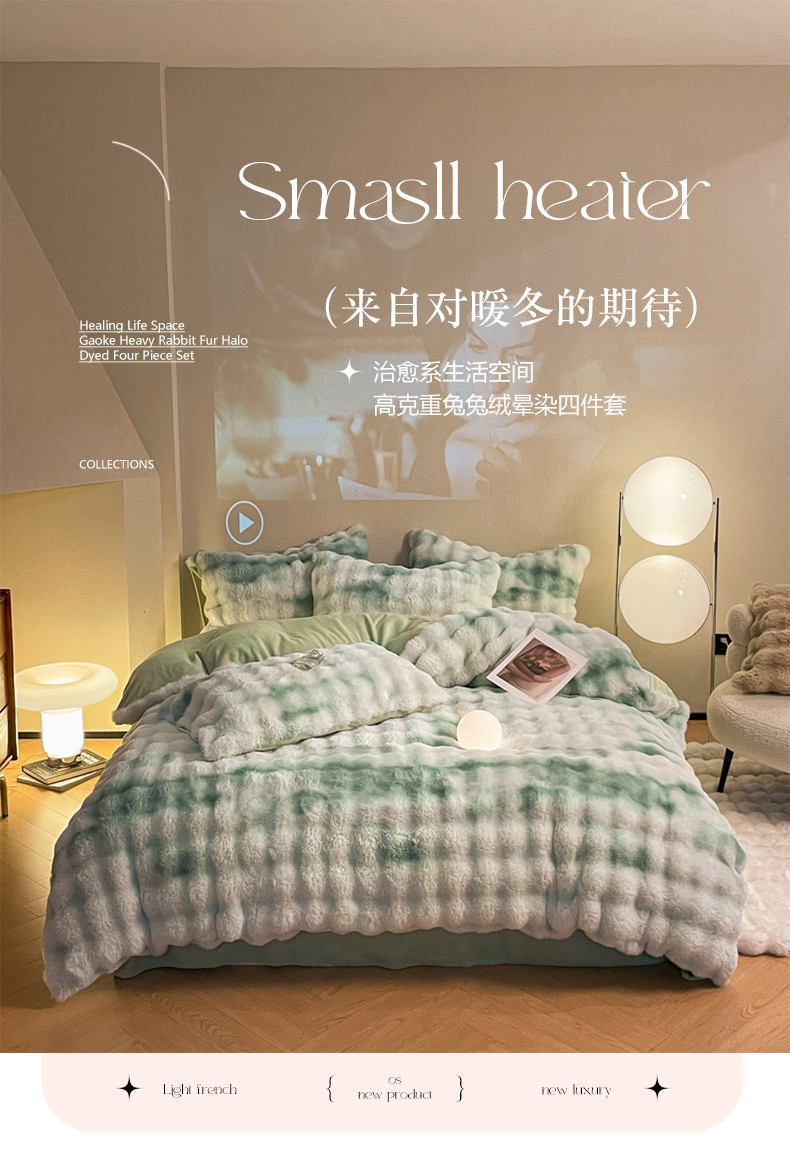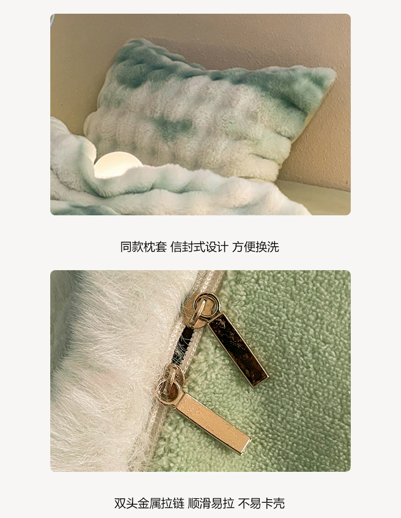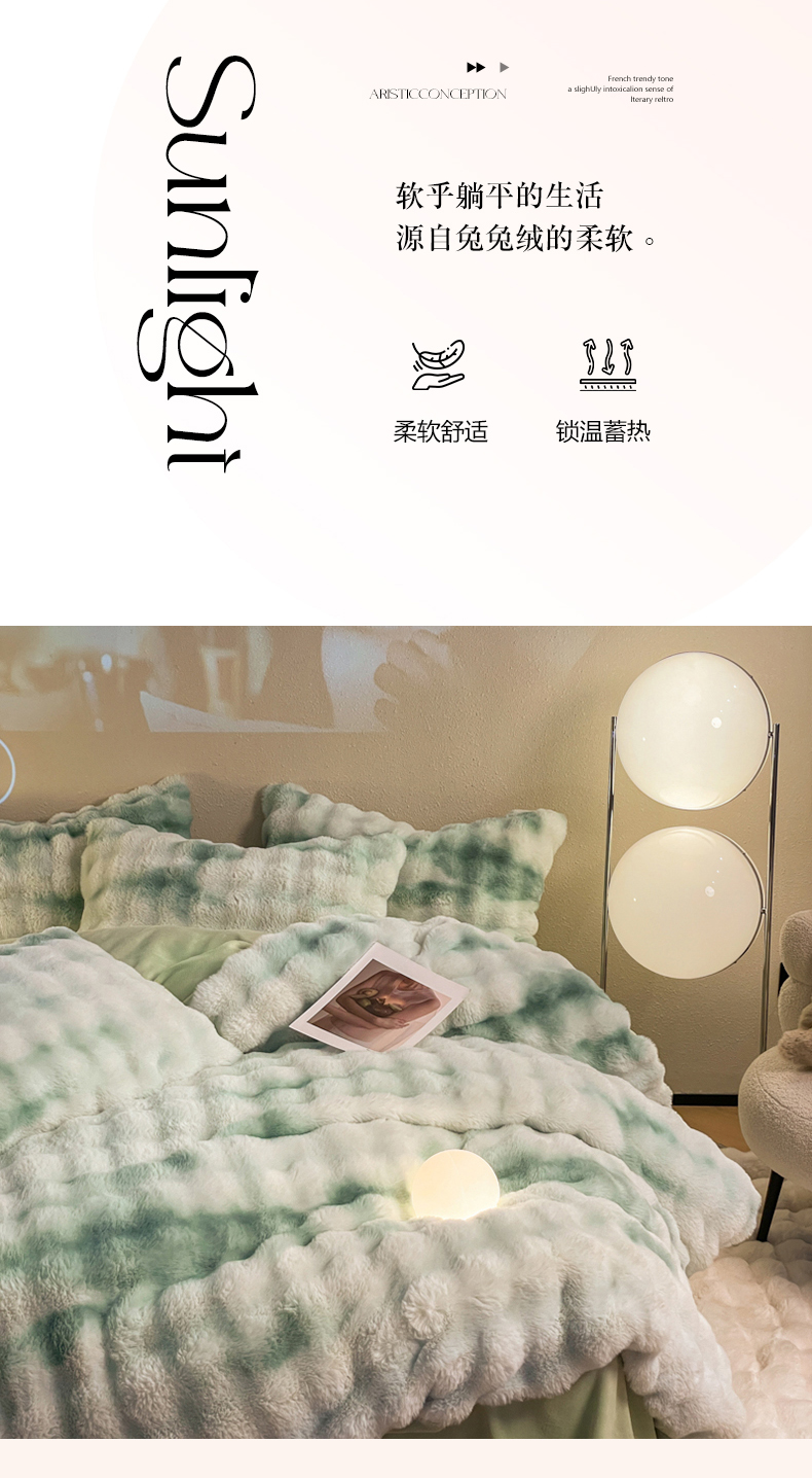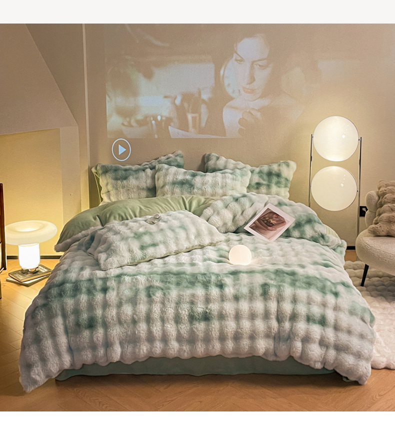 星座家纺 2025新款大泡泡兔兔绒四件套-场景2 淡雅绿