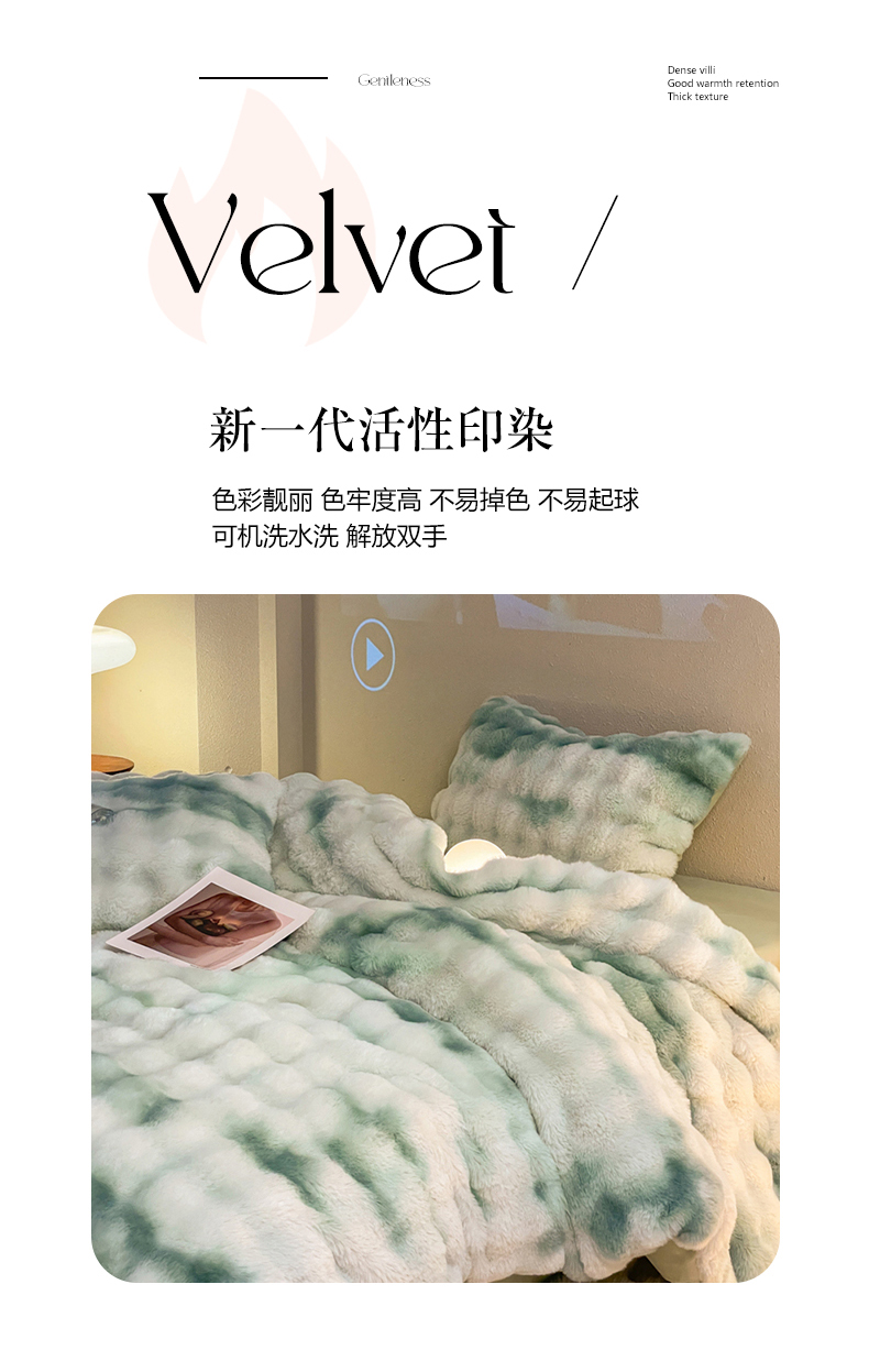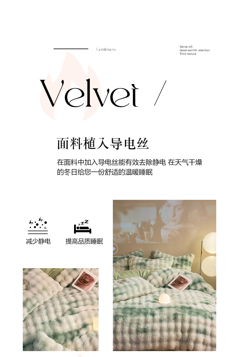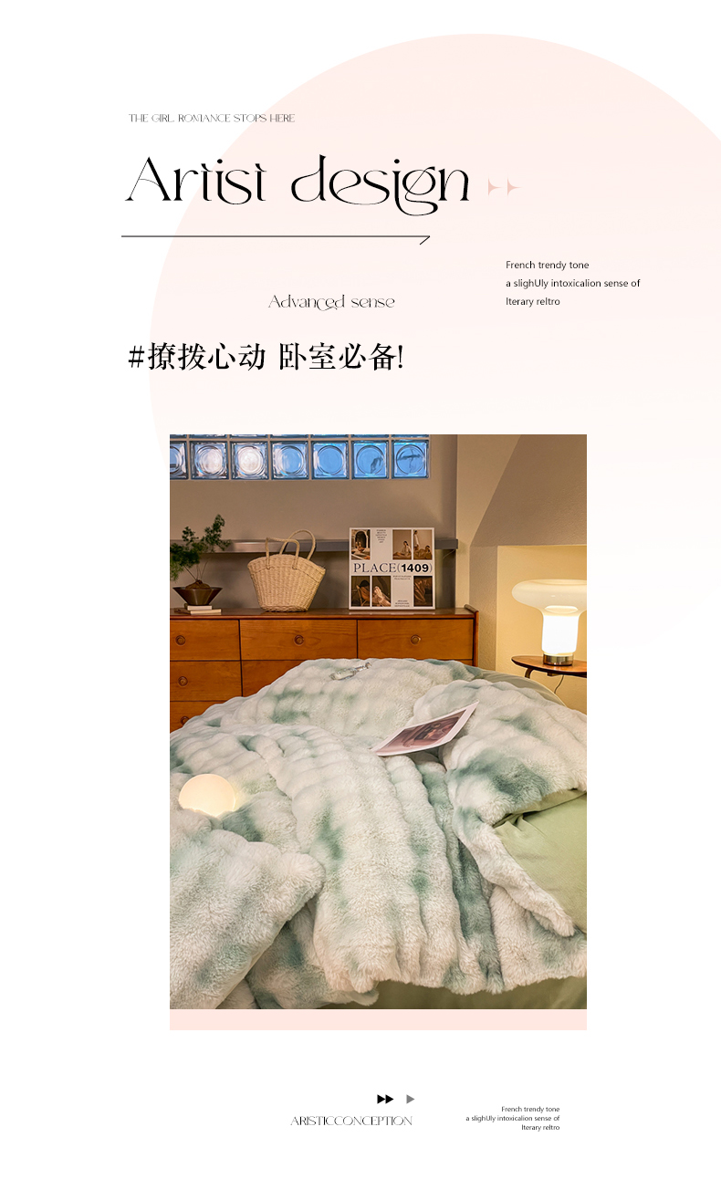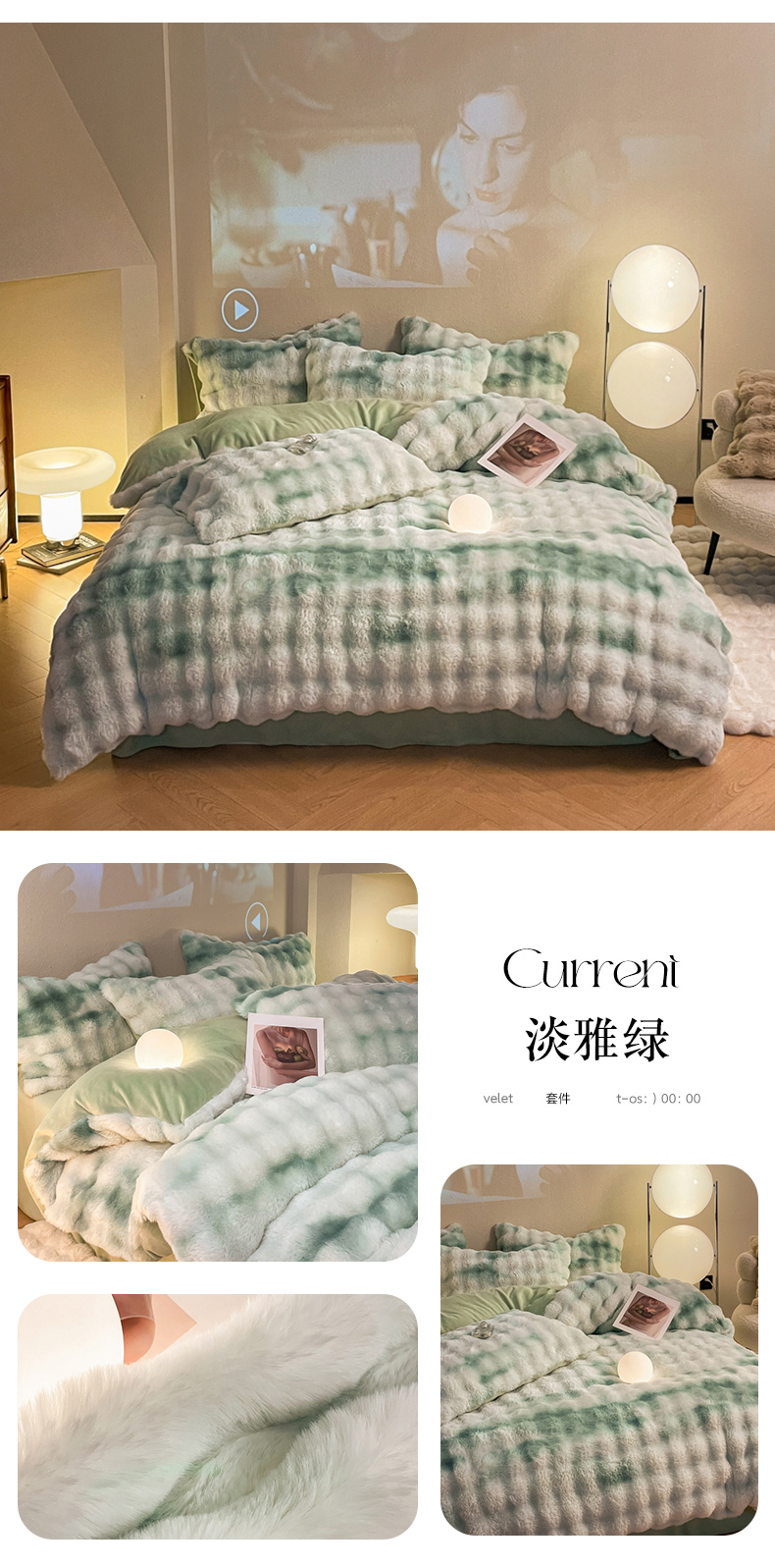星座家纺 2025新款大泡泡兔兔绒四件套-场景2 淡雅绿