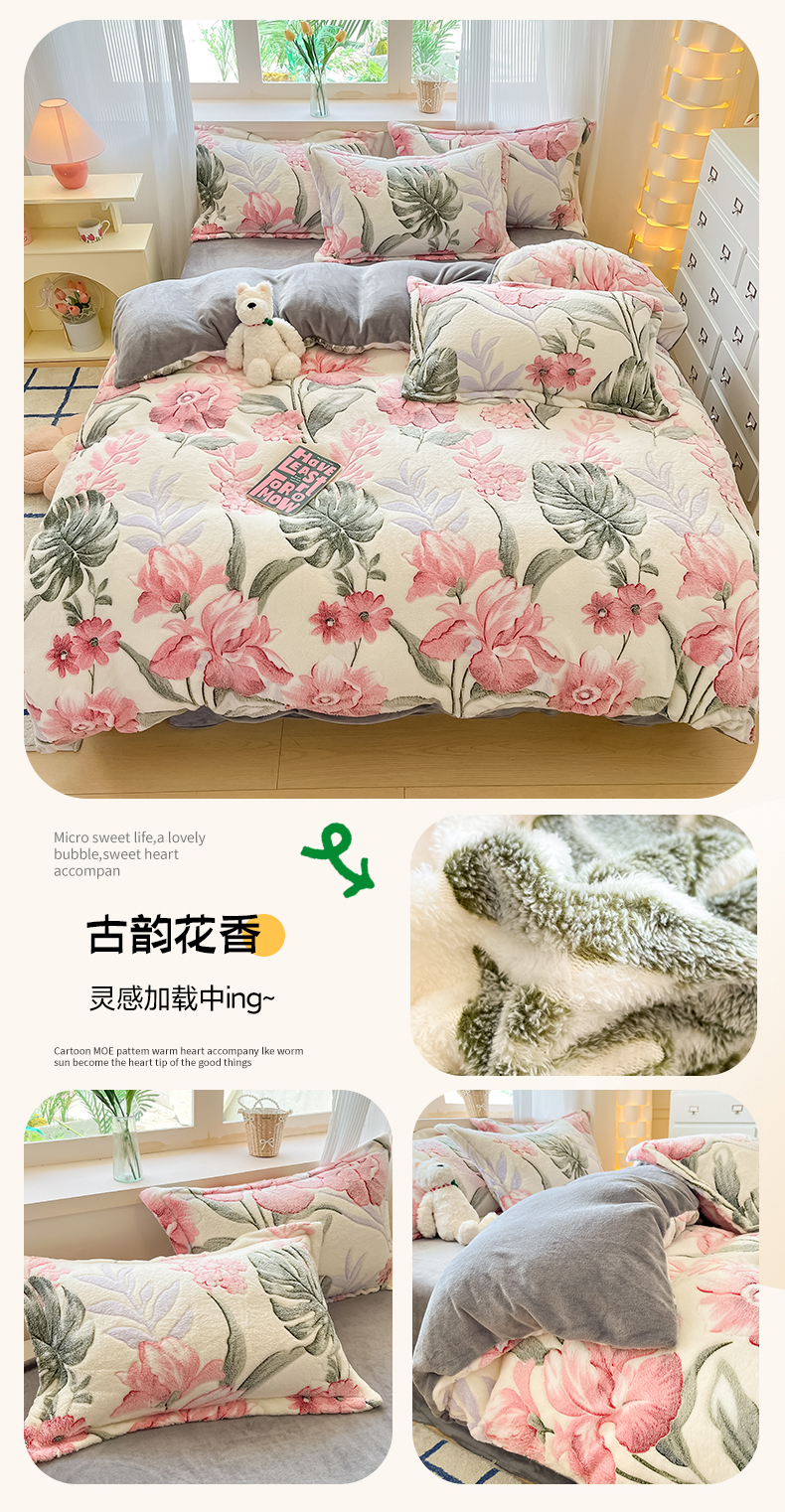 当前位置: 91家纺网 > 商品网购 > 床品套件 > 四件套 > 牛奶绒四件套 > 同田家纺 2024秋冬新品雪花绒牛奶绒印花四件套 古韵花香