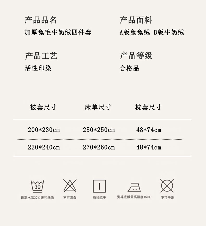商品名称:席之家 2024新款加厚兔毛牛奶绒四件套 珍珠白