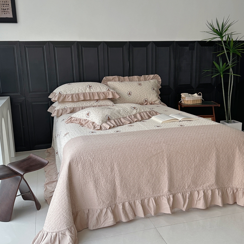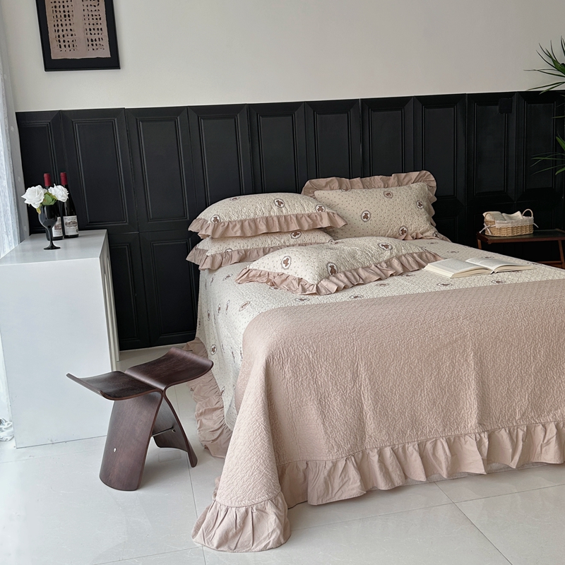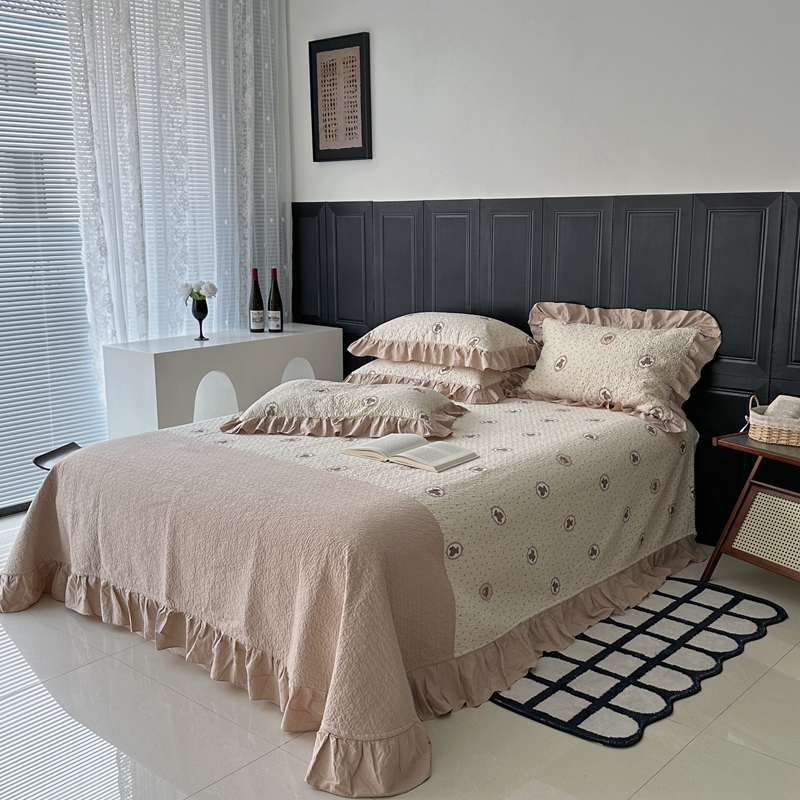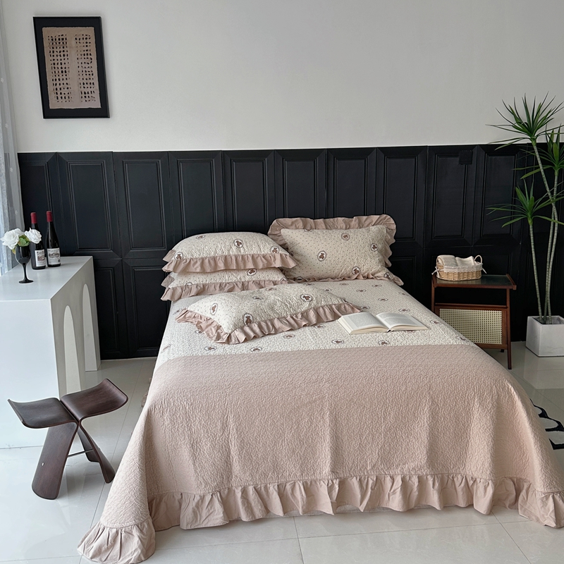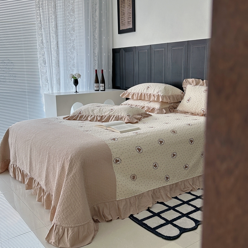 佰织鑫家居 2024新款全棉拼接款棉花砂洗床盖三件套 小花熊