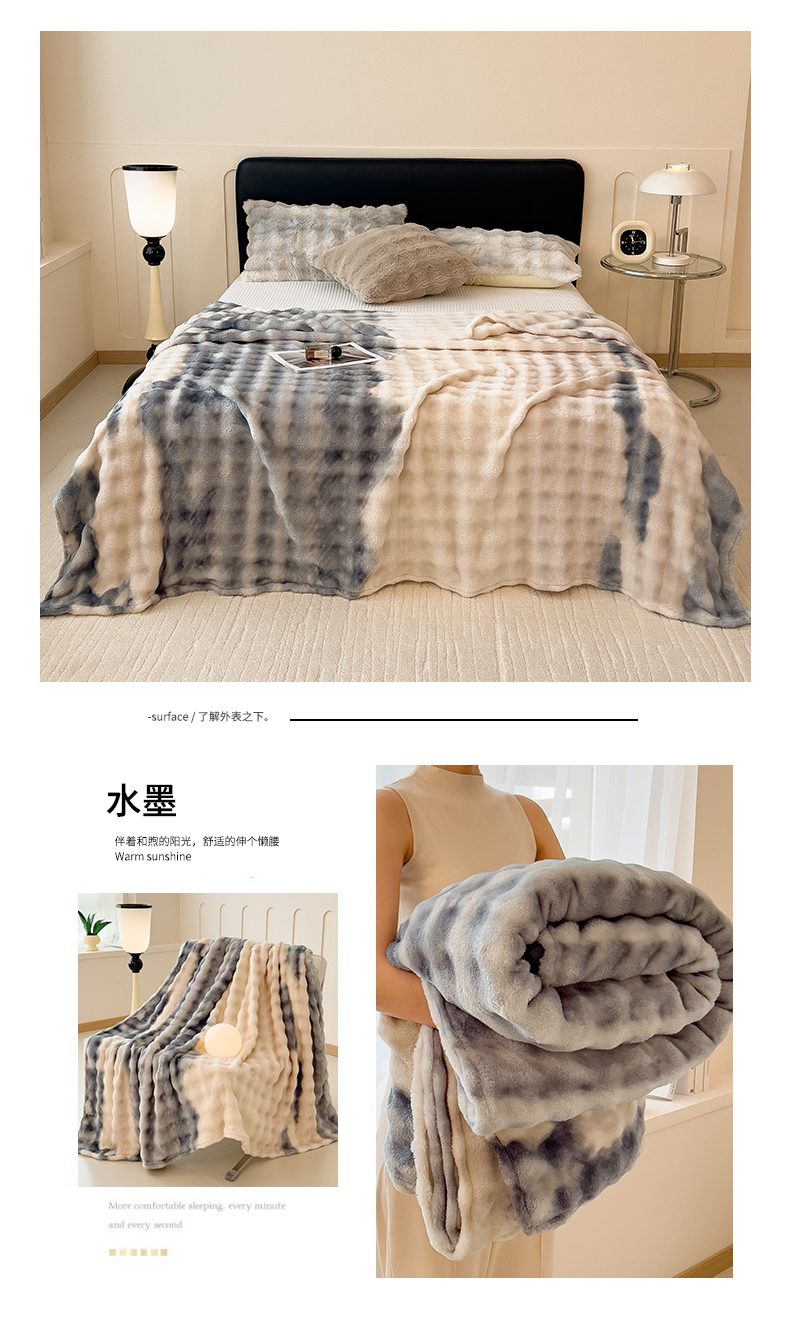 商品名称:兄弟坊 2025新款双面兔毛印花毛毯 午睡毯 盖毯 水墨