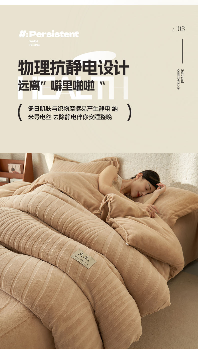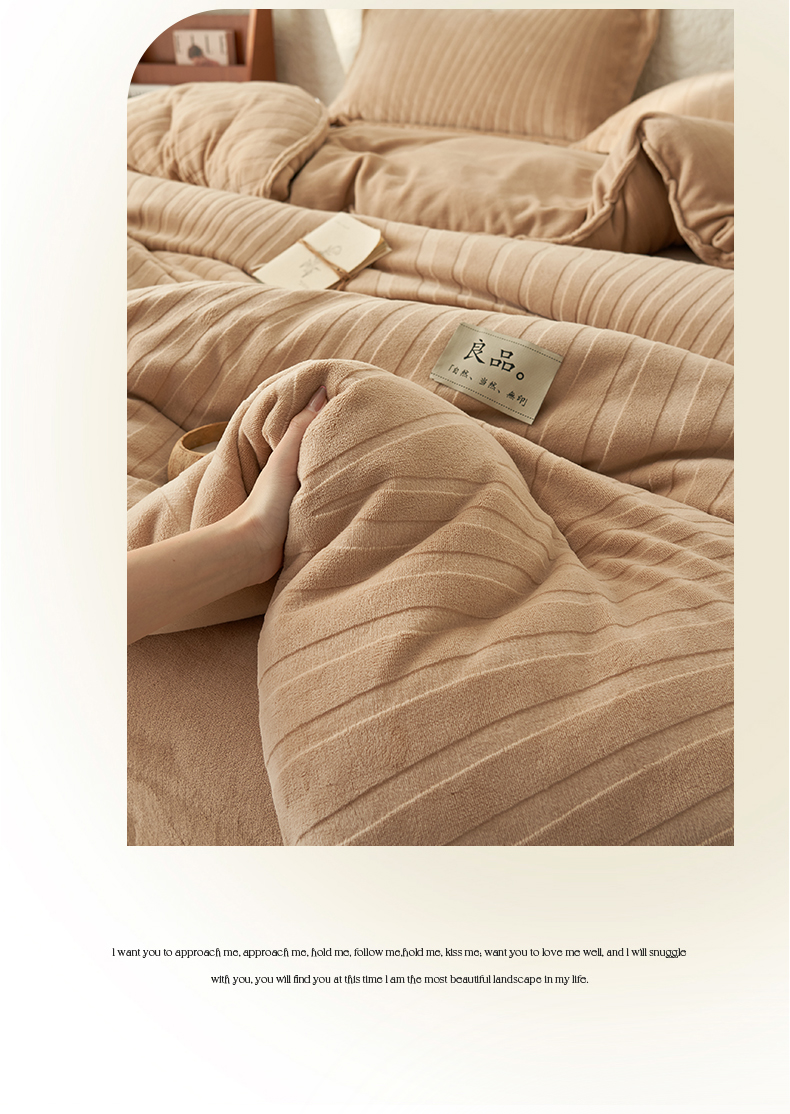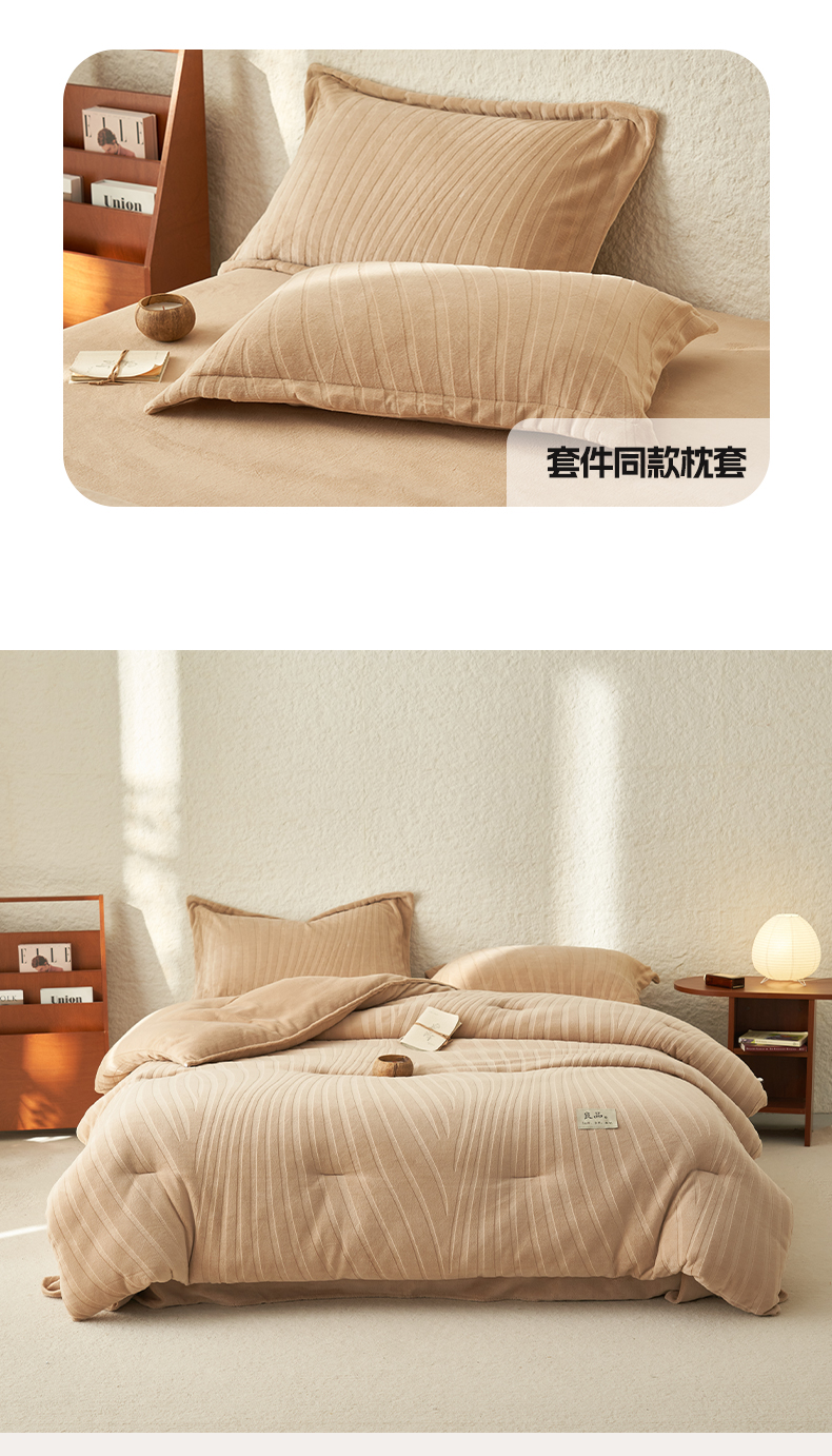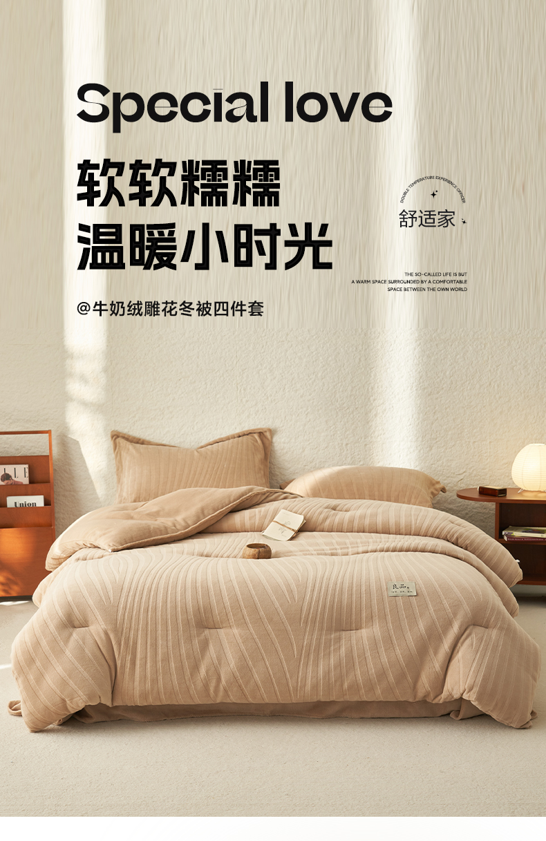 • 91家纺网 家纺一手货源 找家纺 2024新款牛奶绒牛奶绒雕花冬被四件套 曲线雕花-撞色奶咖