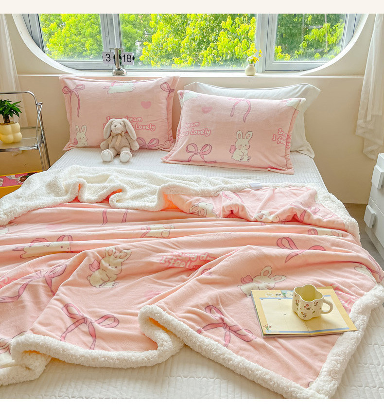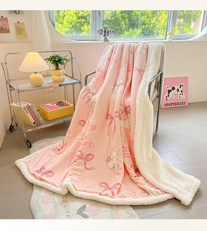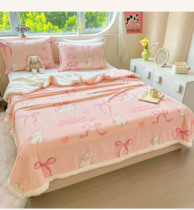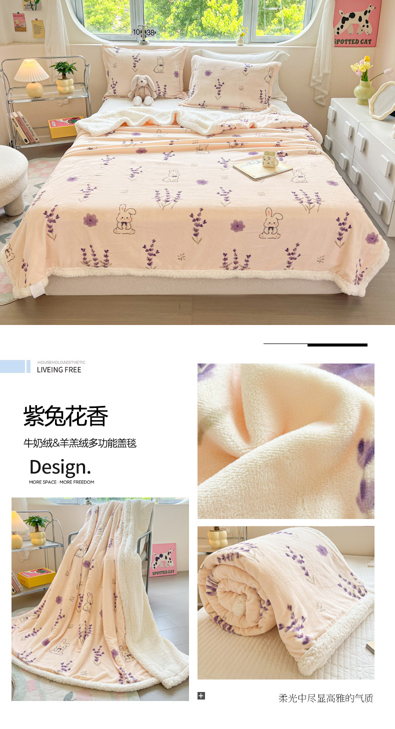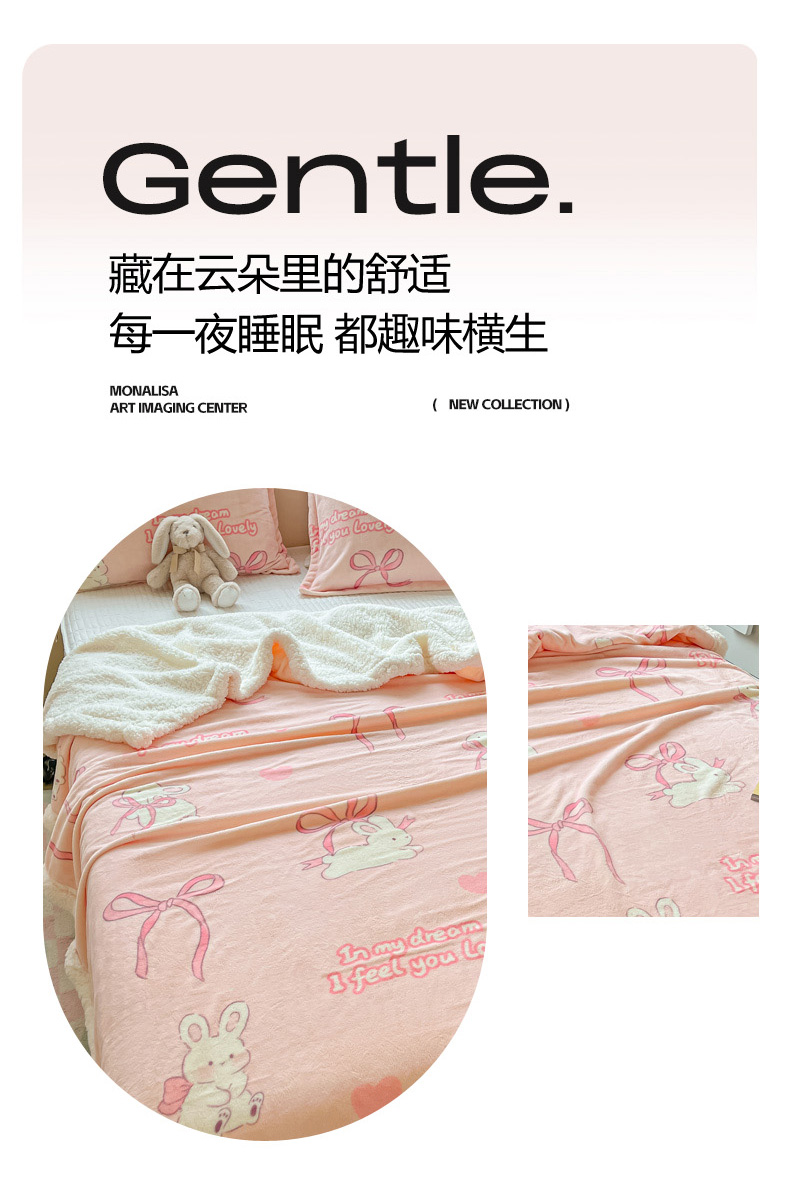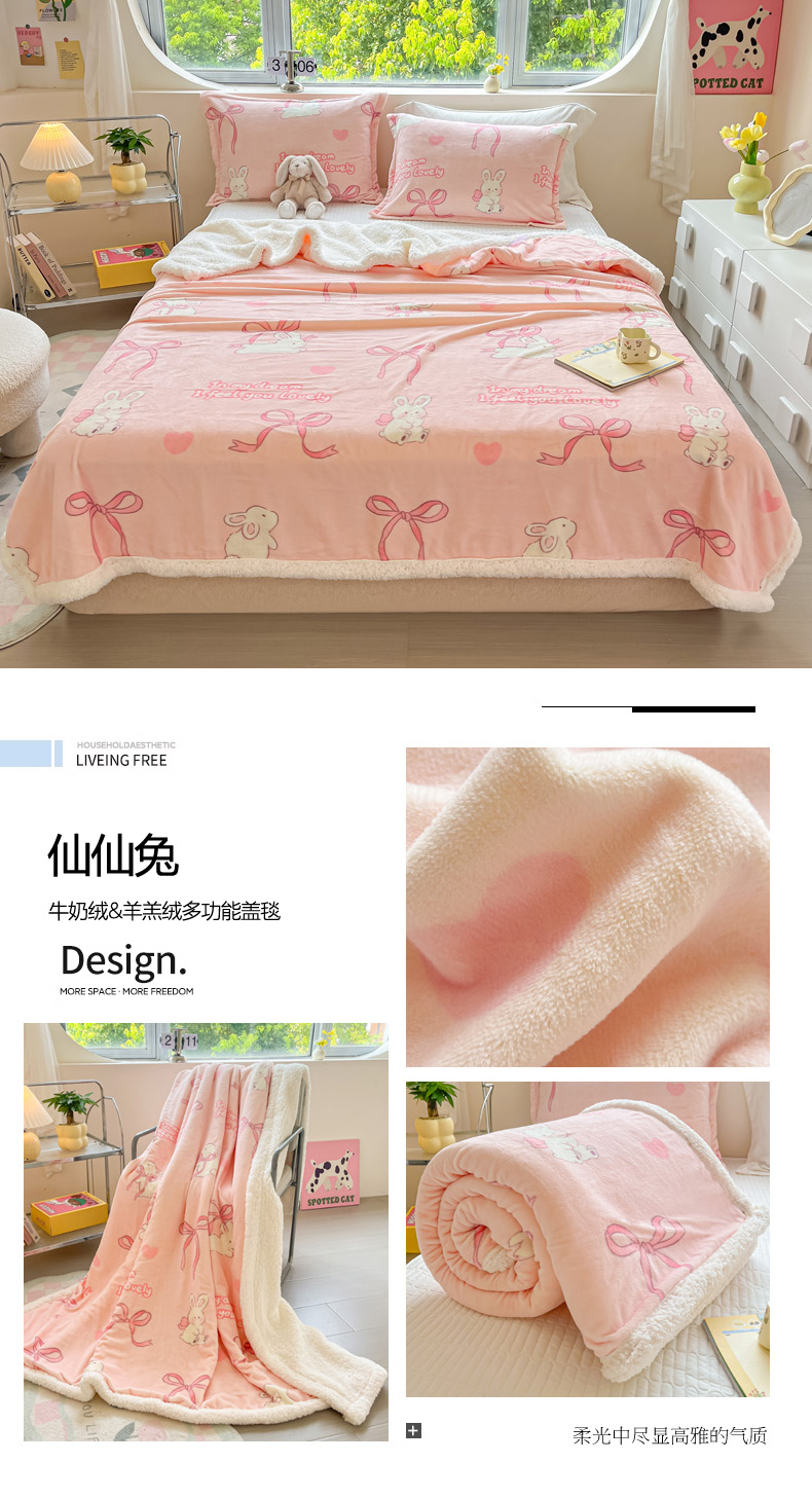 商品名称:沐慕 2024新款AB版牛奶绒拼羊羔绒毛毯毯子 毛毯-仙仙兔