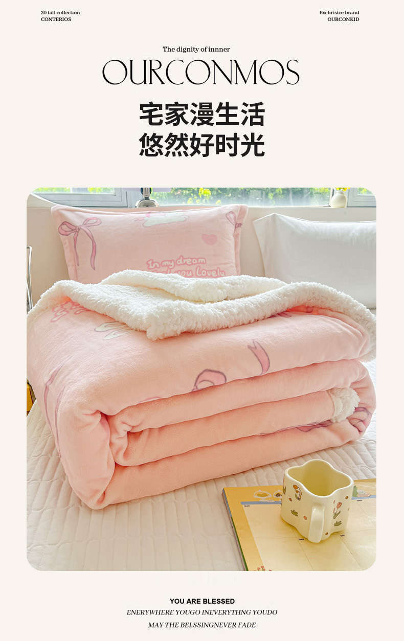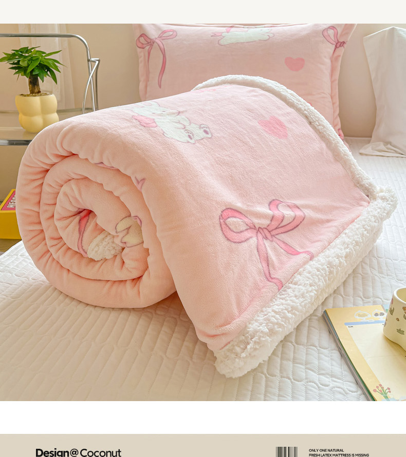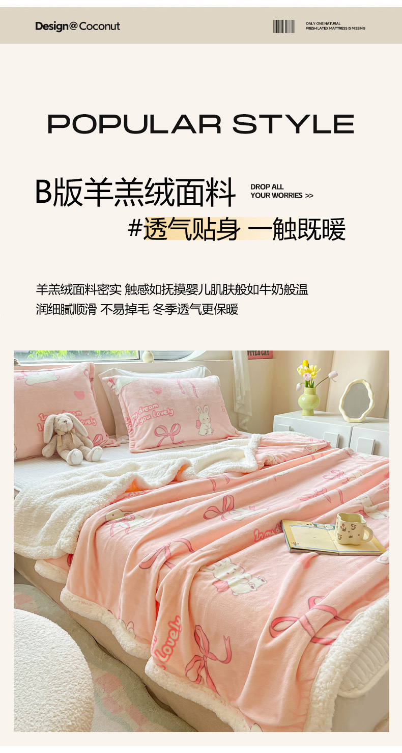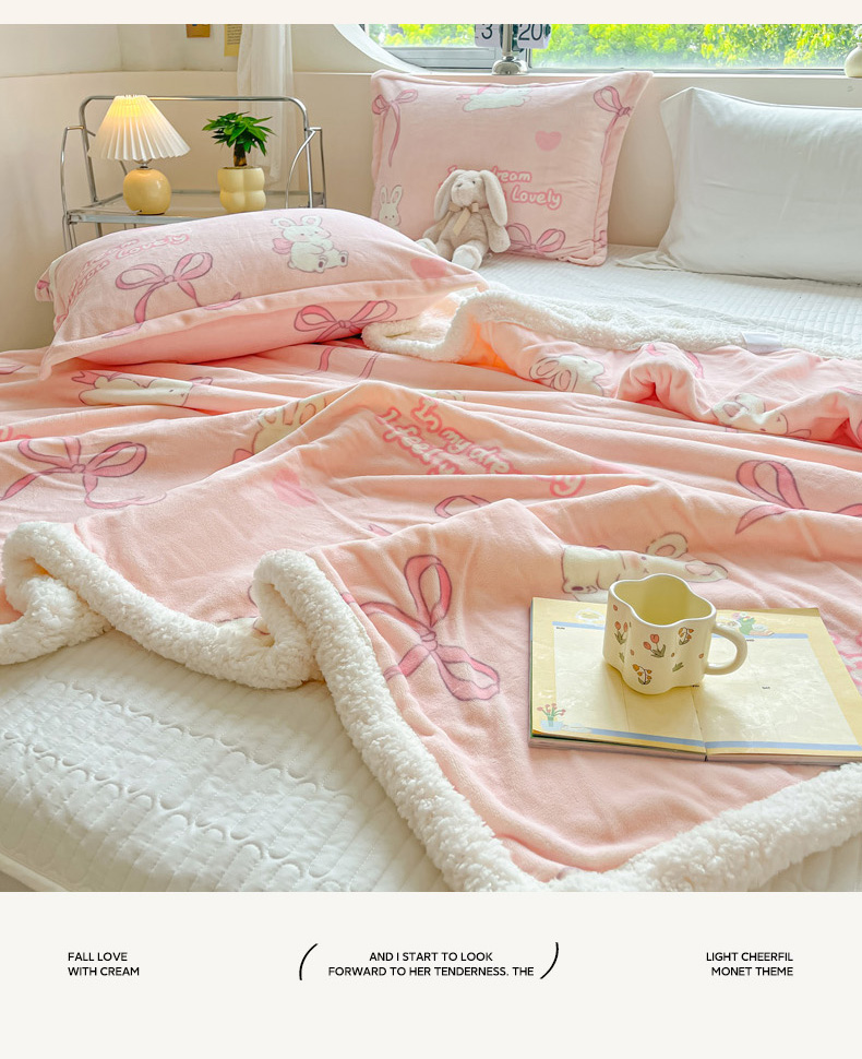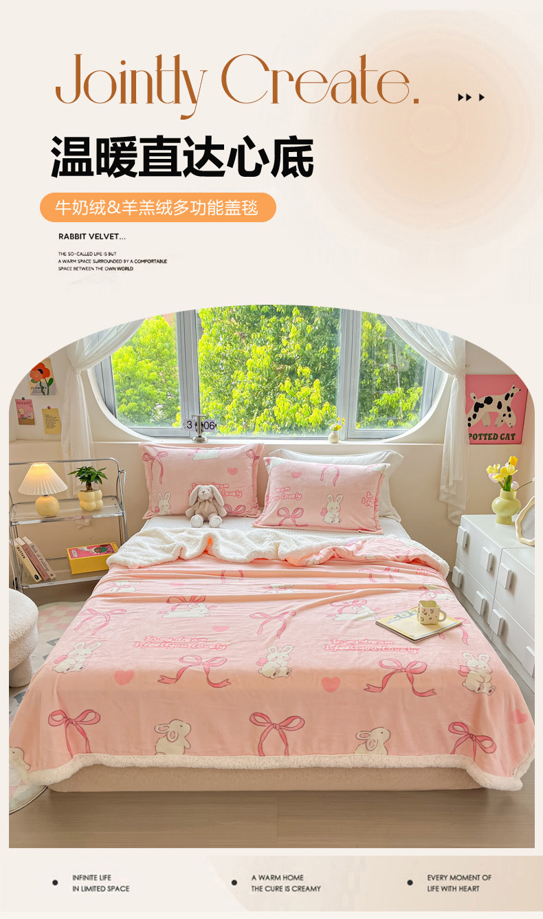 商品名称:沐慕 2024新款AB版牛奶绒拼羊羔绒毛毯毯子 毛毯-仙仙兔