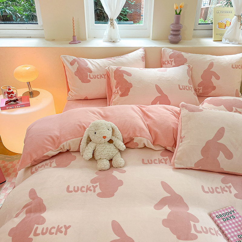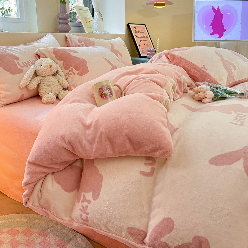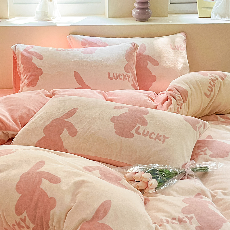 雅居纺家纺 2024新款高克重印花牛奶绒单被套 幸运兔