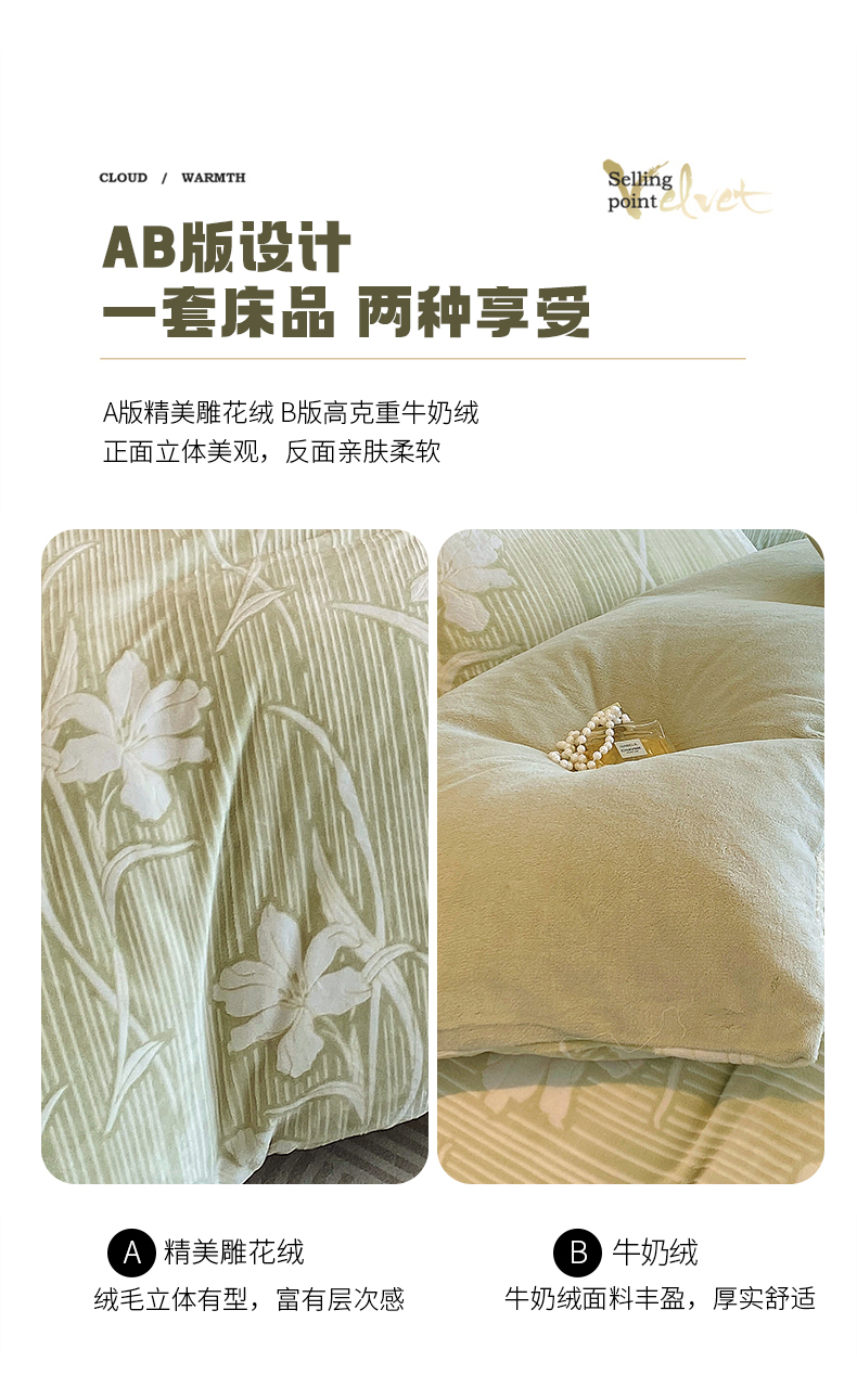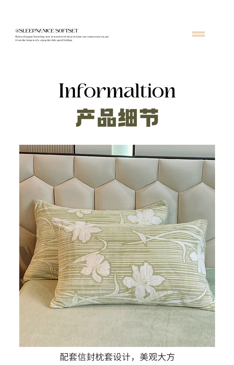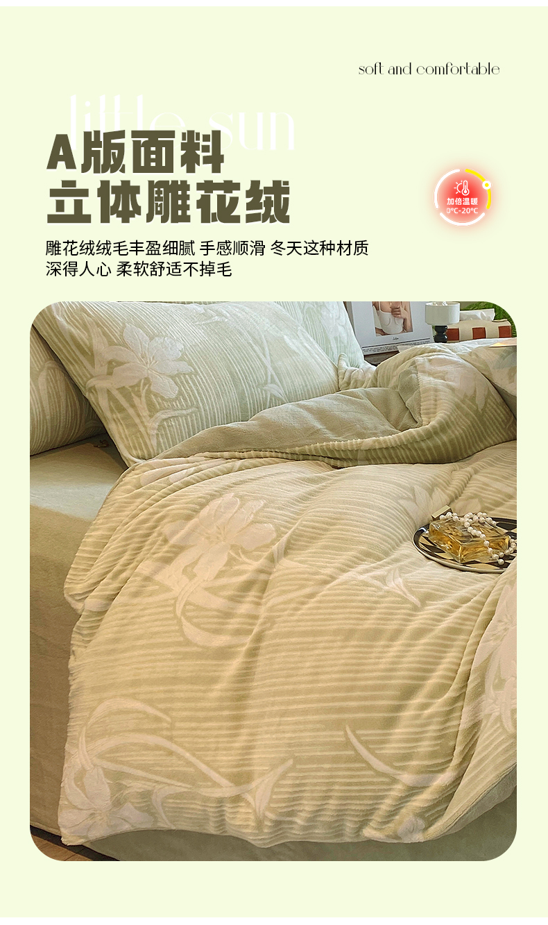 商品名称:佰亿莱 2024新款雕花牛奶绒四件套 绿意盎然