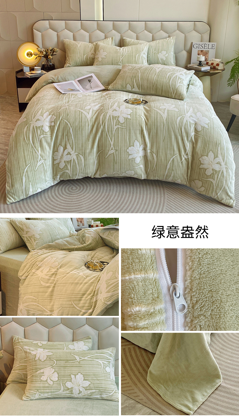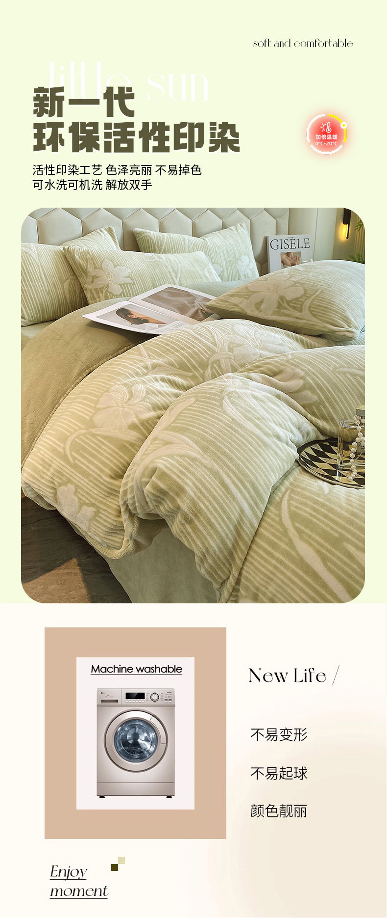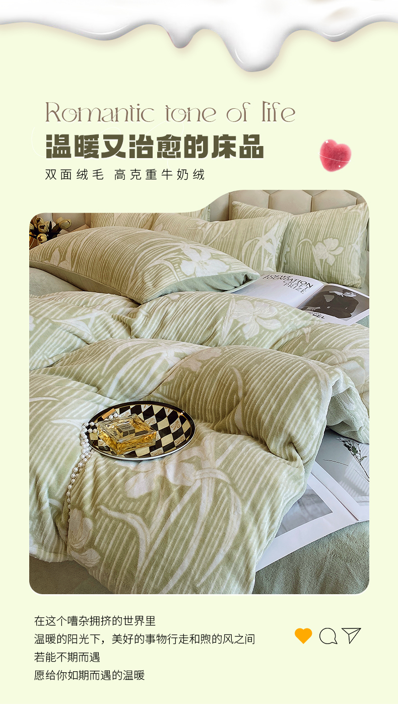 佰亿莱 2024新款雕花牛奶绒四件套 绿意盎然