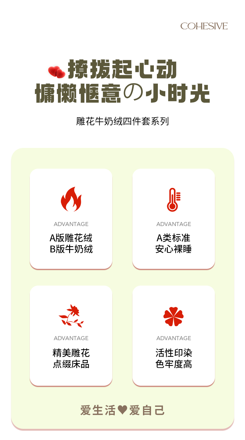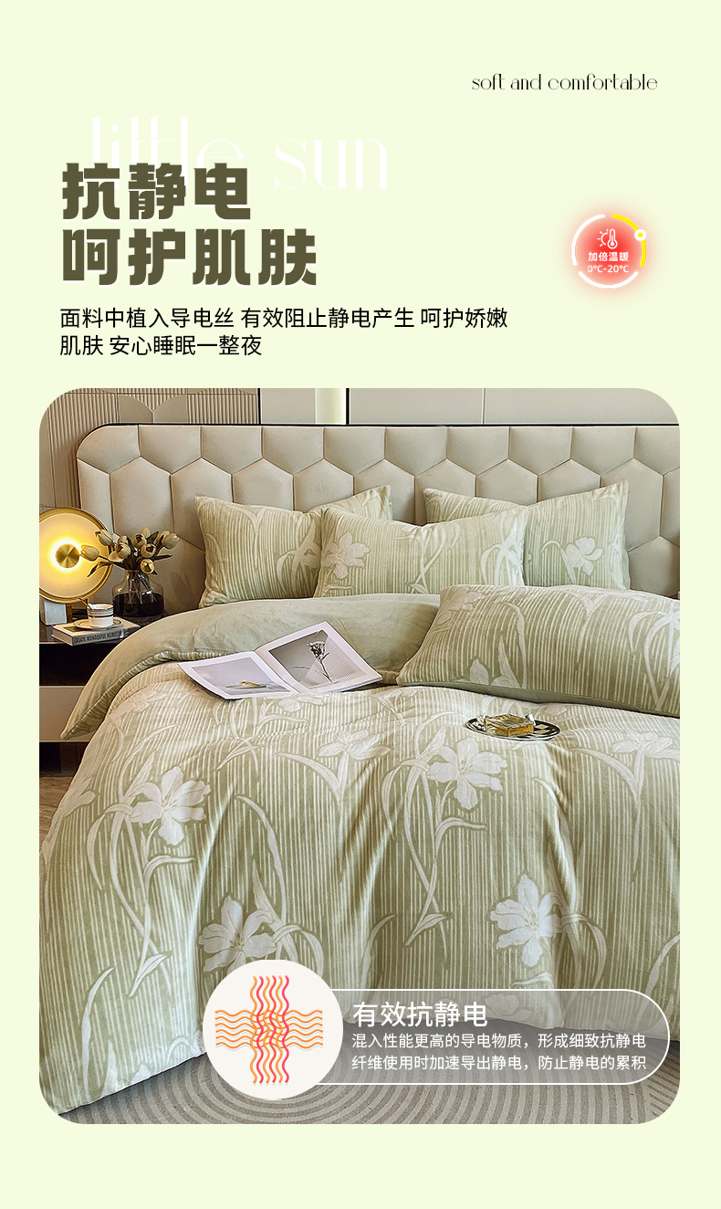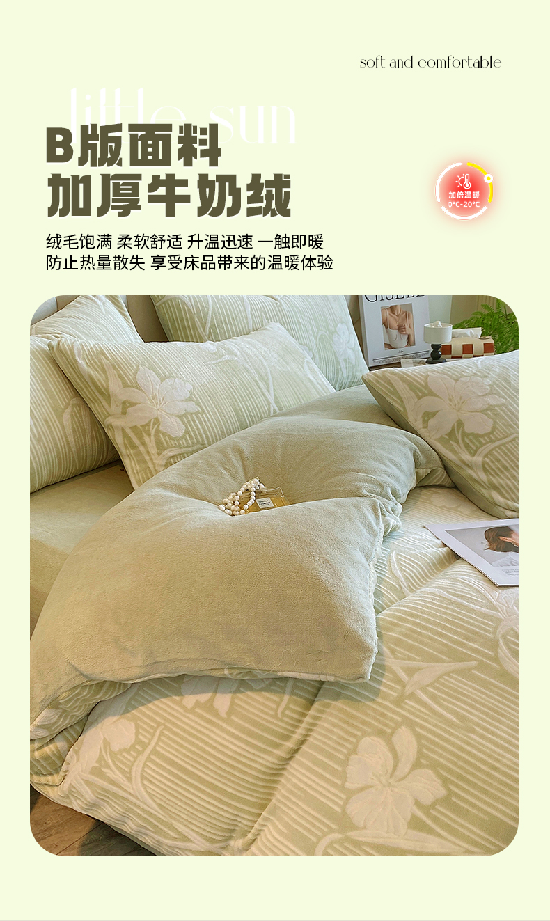 佰亿莱 2024新款雕花牛奶绒四件套 绿意盎然