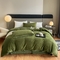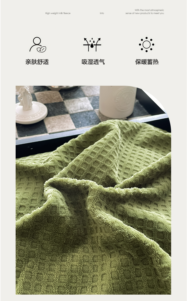 商品名称:雅居纺家纺 2024新款简约风雕花绒四件套 华夫格绒-墨绿
