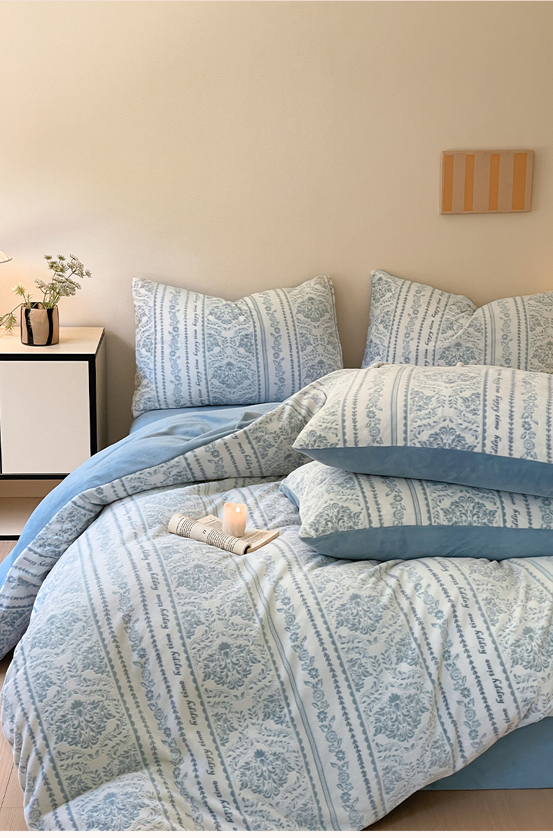 雅居纺家纺 2024新款花卉雕花绒四件套 法式风情-蓝