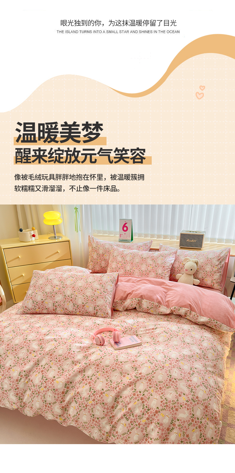 当前位置: 91家纺网 > 商品网购 > 床品套件 > 四件套 > 其它四件套 > 清雅福 2024新款小清新ins棉加绒印花四件套系列-棉绒风格二 恋语