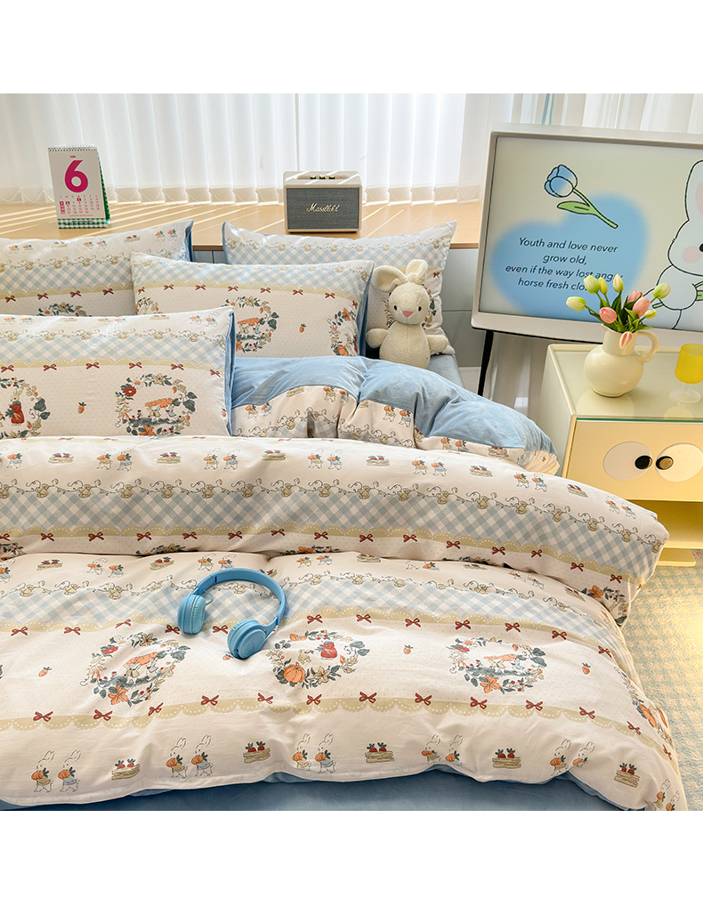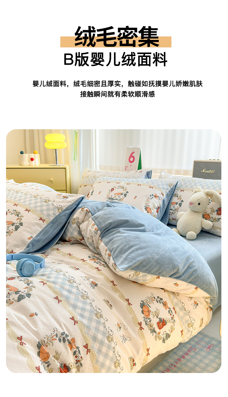 当前位置: 91家纺网 > 商品网购 > 床品套件 > 四件套 > 其它四件套 > 清雅福 2024新款小清新ins棉加绒印花四件套系列-棉绒风格二 维西兔