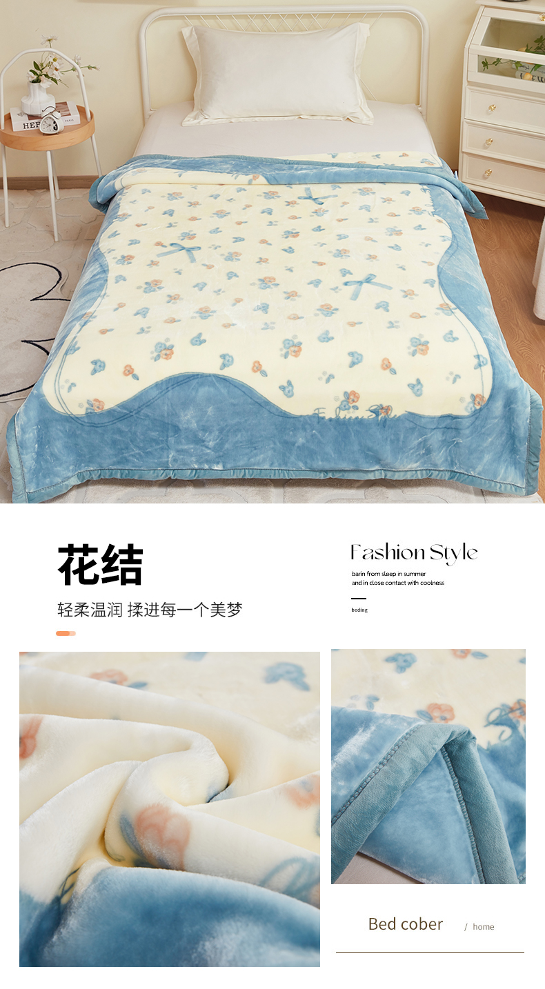 凯轩毛毛毯毯子网销专供 2024新款双层学生云毛毯毯子 花结