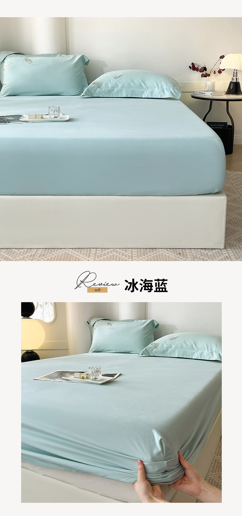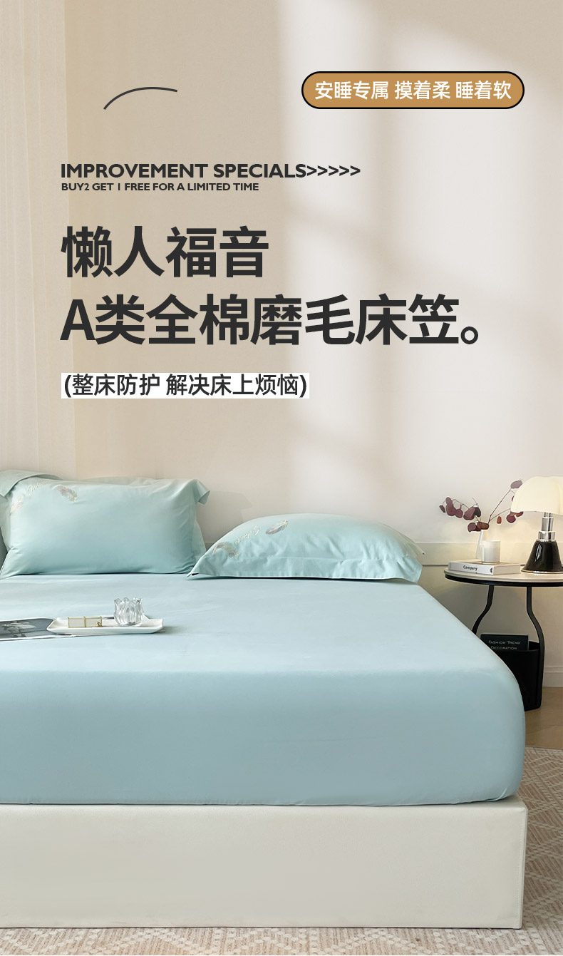 • 91家纺网 家纺一手货源 找家纺  2024新款【A类母婴级】加厚全棉磨毛四件套纯棉保暖床笠纯色床垫保护罩冬季单件床上用品 冰海蓝【A类加厚全棉品质】