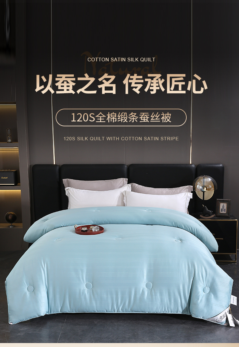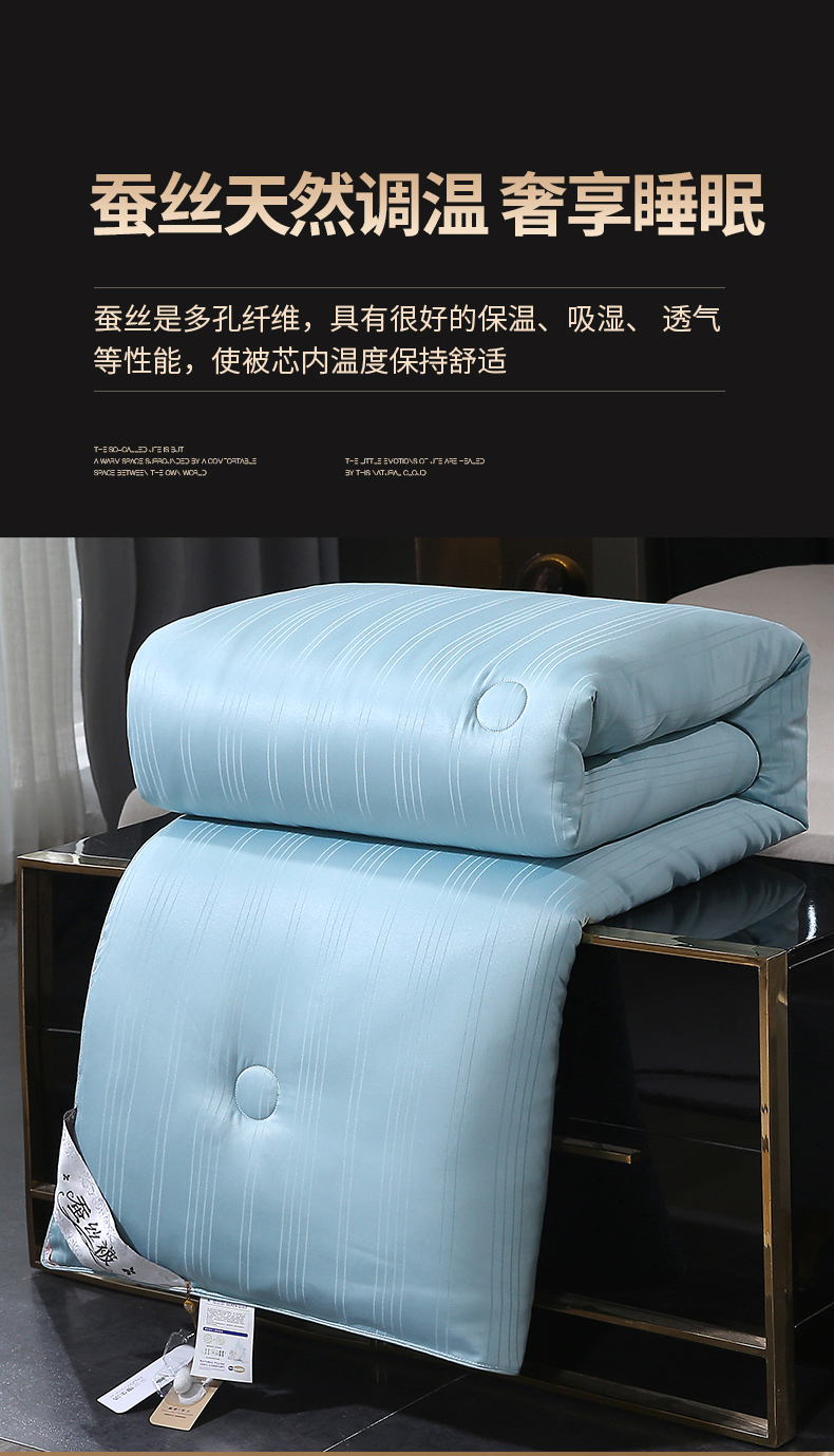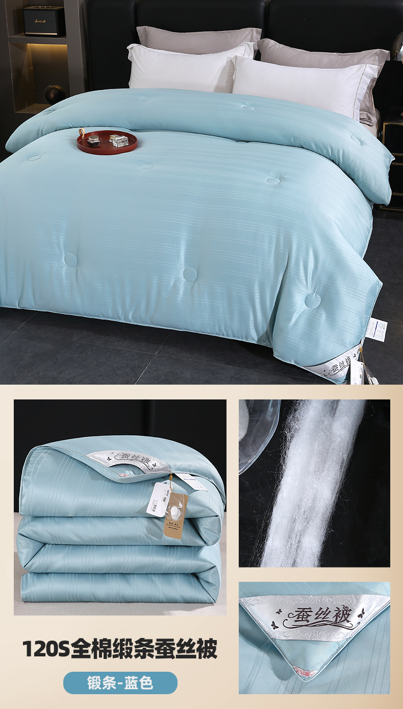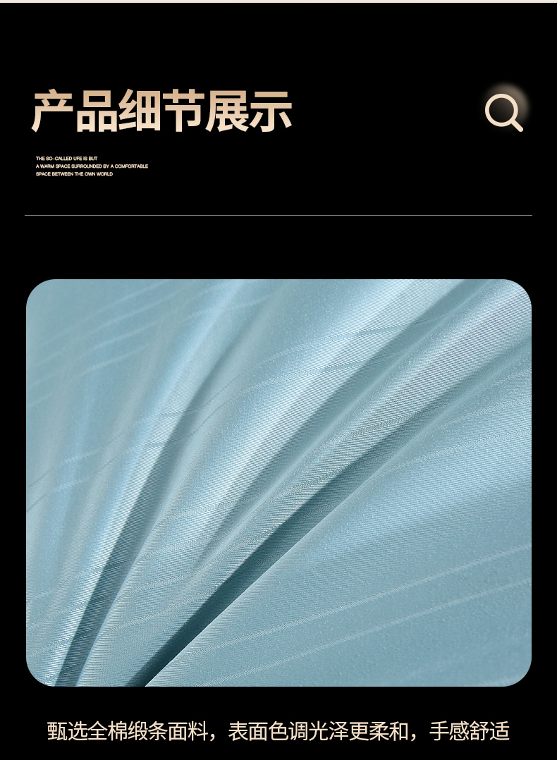 • 91家纺网 家纺一手货源 找家纺 前程家纺 2025新款120S全棉缎条被子母被二合一双胎被拉链款冬被春秋被 锻条--水蓝色