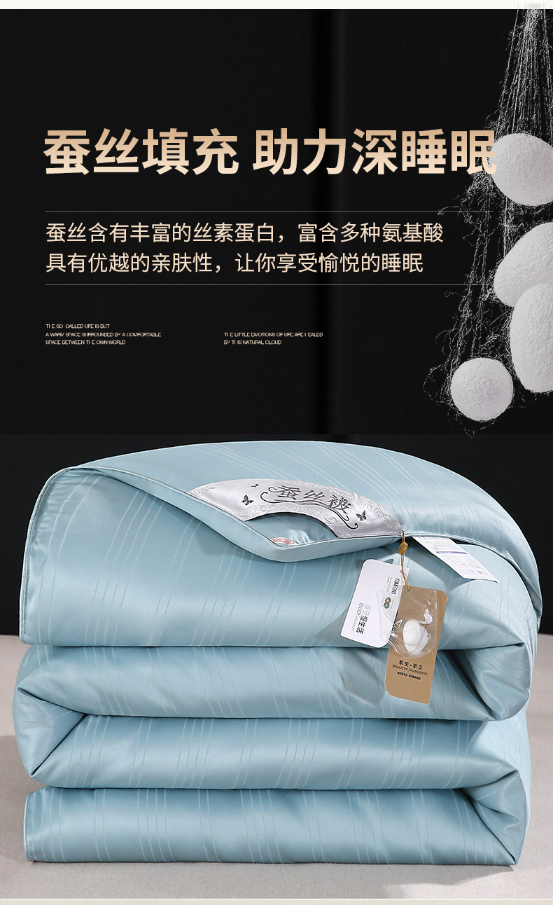 当前位置: 91家纺网 > 商品网购 > 被子 > 蚕丝被 > 前程家纺 2025新款120S全棉缎条被子母被二合一双胎被拉链款冬被春秋被 锻条--水蓝色