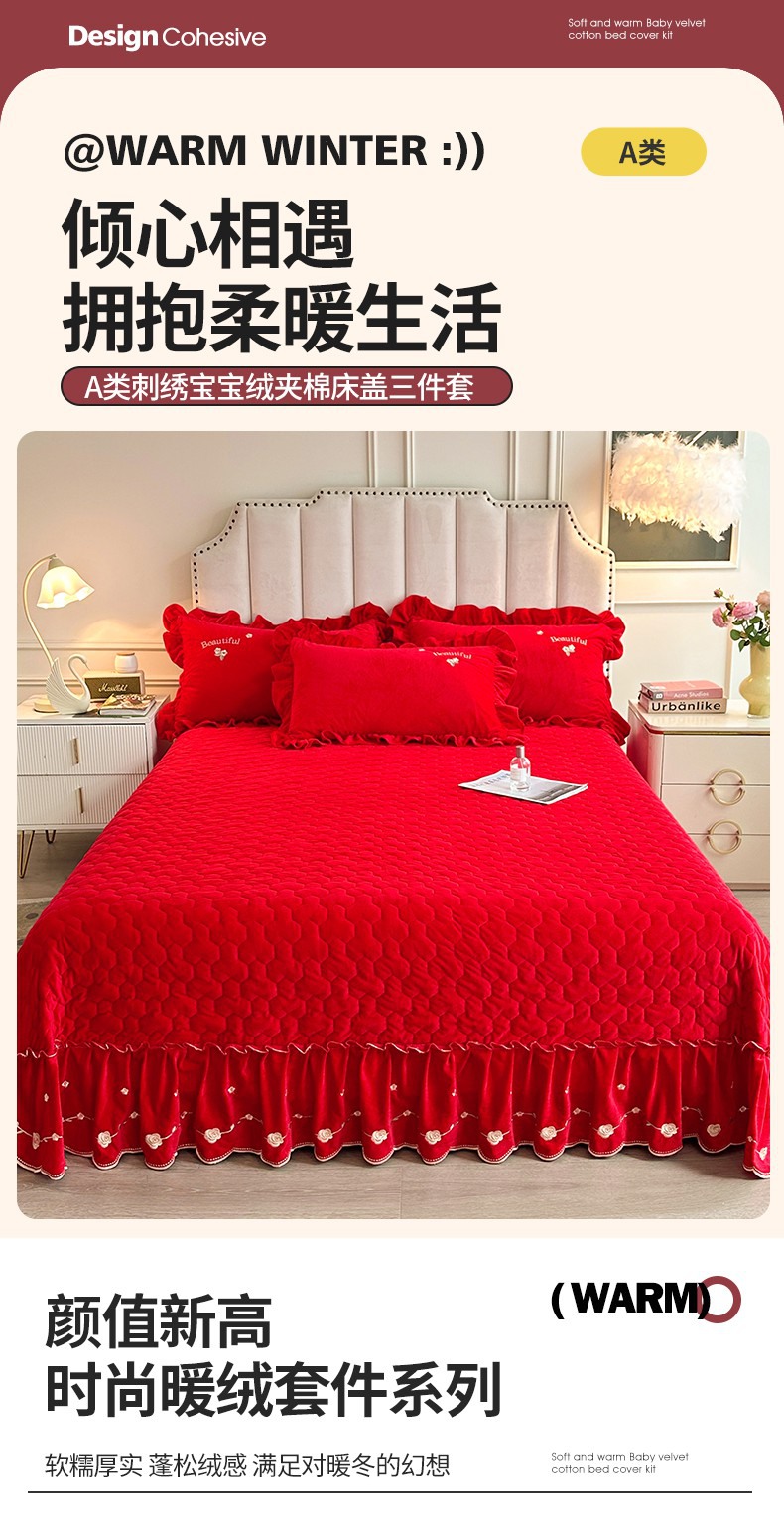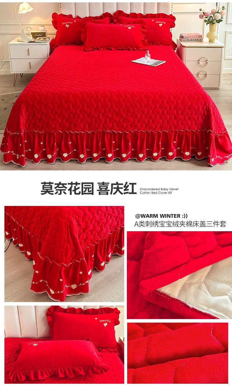 当前位置: 91家纺网 > 商品网购 > 床品套件 > 三件套 > 恒爱家纺 2024新款A类宝宝绒刺绣莫奈花园夹棉床盖款三件套 莫奈花园 喜庆红