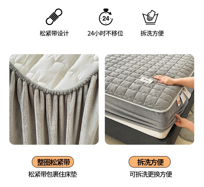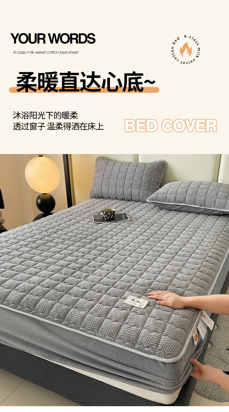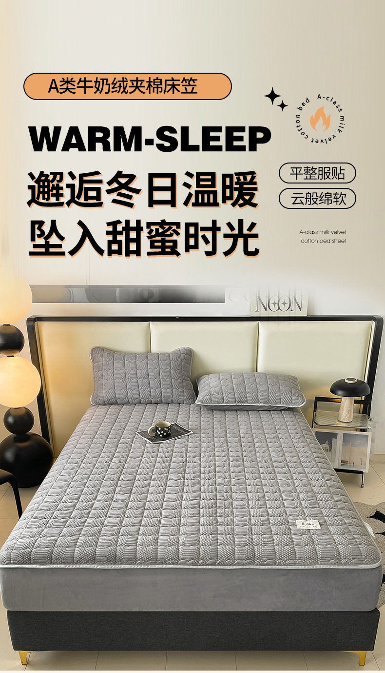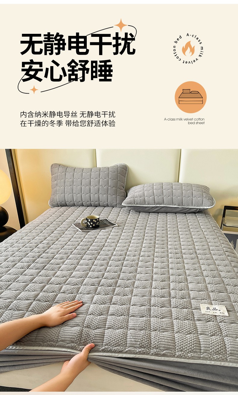 • 91家纺网 家纺一手货源 找家纺 恒爱家纺 2024新款A类良品牛奶绒夹棉床笠 良品-典雅灰