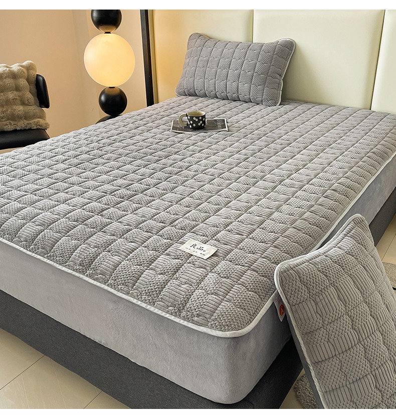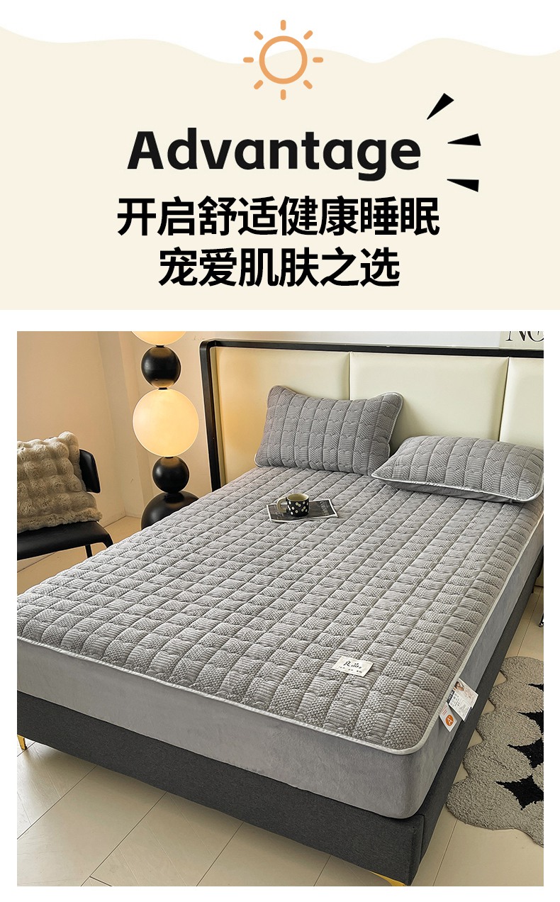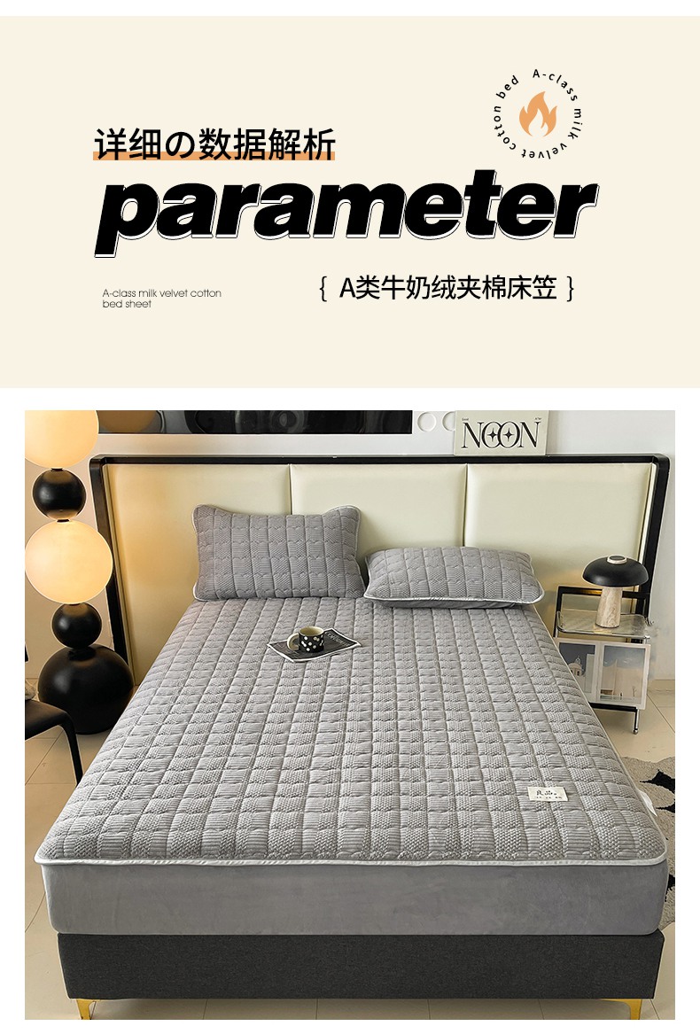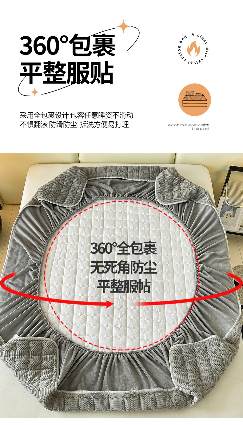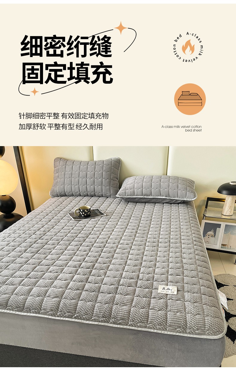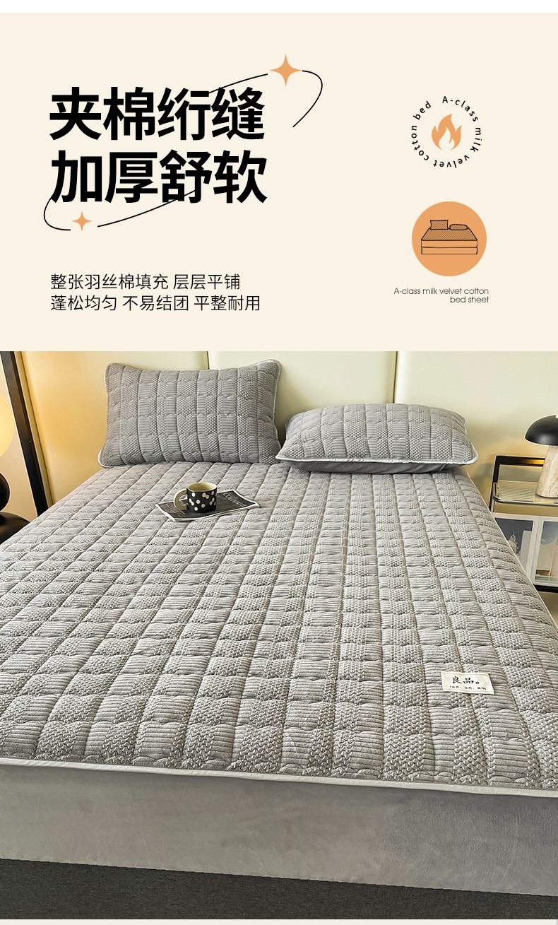 恒爱家纺 2024新款A类良品牛奶绒夹棉床笠 良品-典雅灰
