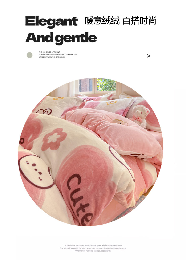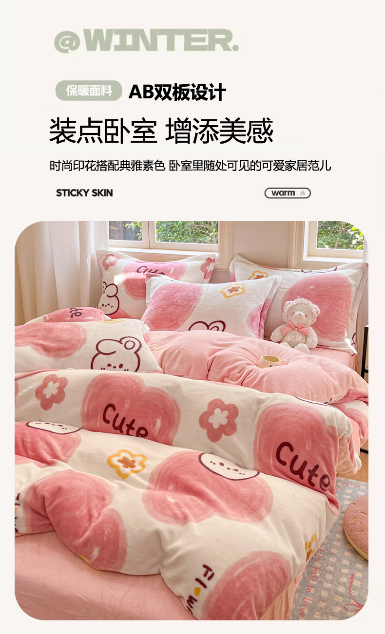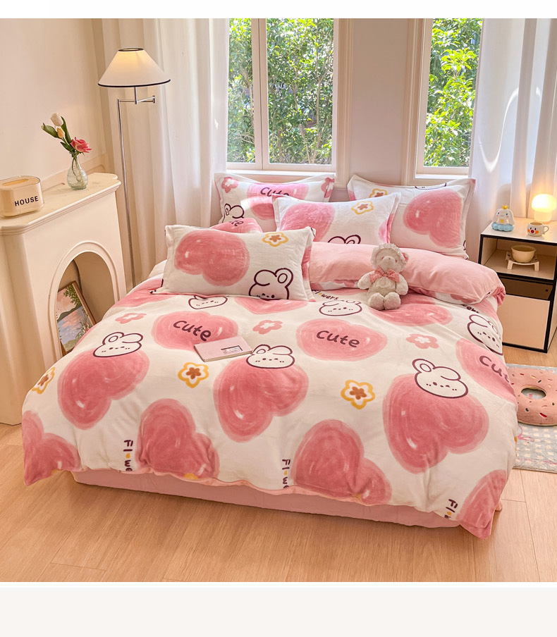 当前位置: 91家纺网 > 商品网购 > 床品套件 > 四件套 > 牛奶绒四件套 > 沐慕 2024新款200g加厚牛奶绒四件套 爱心粉兔