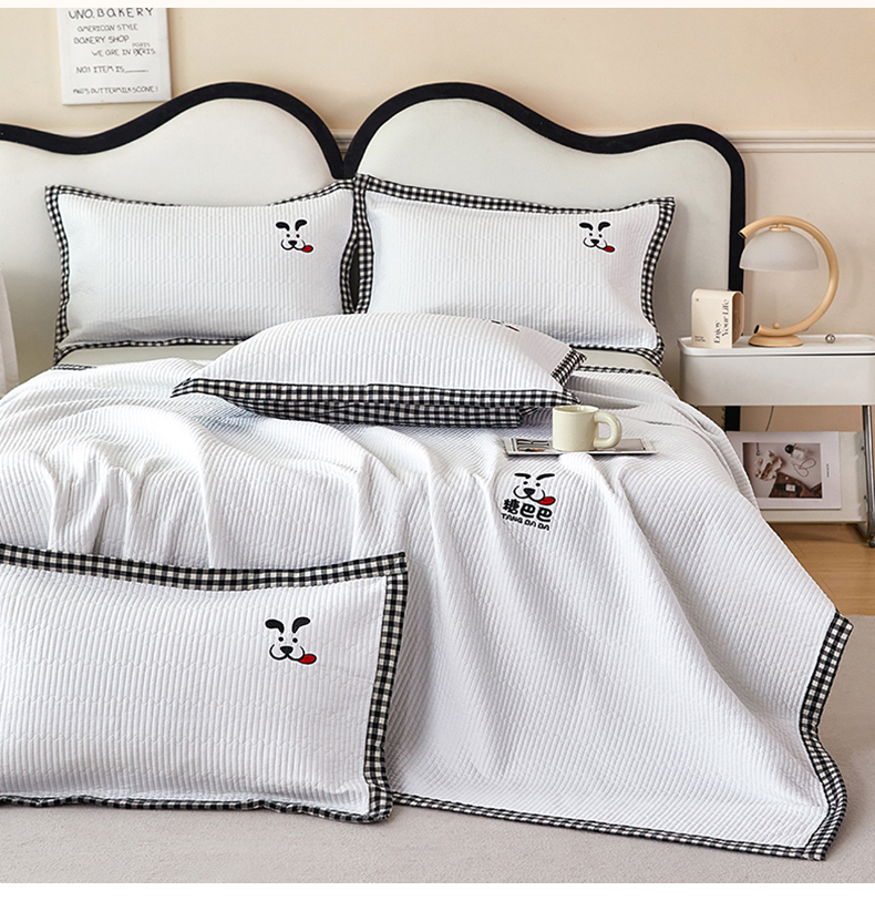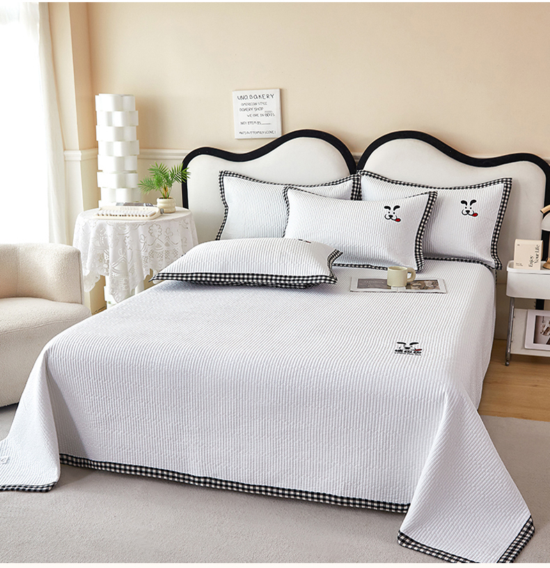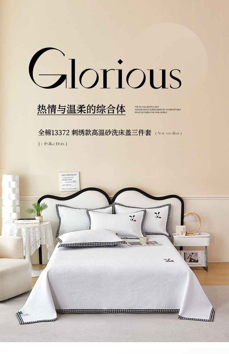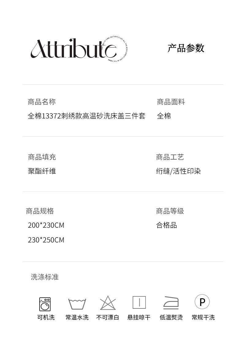 商品名称:(总)莎果家纺 2024新款全棉13372刺绣款高温砂洗床盖三件套
