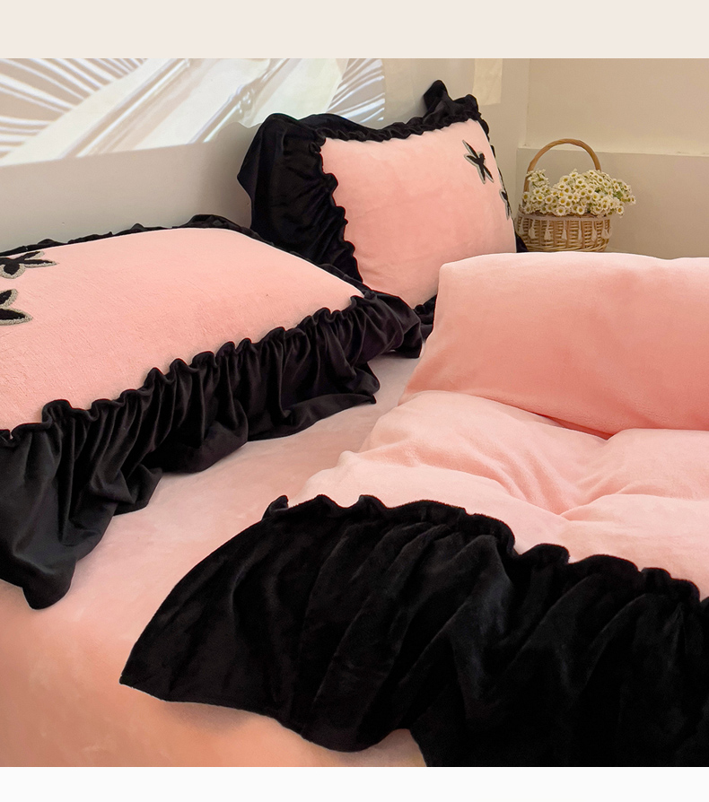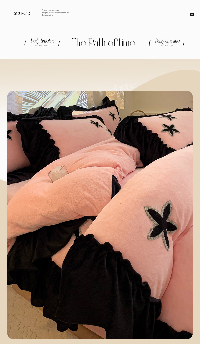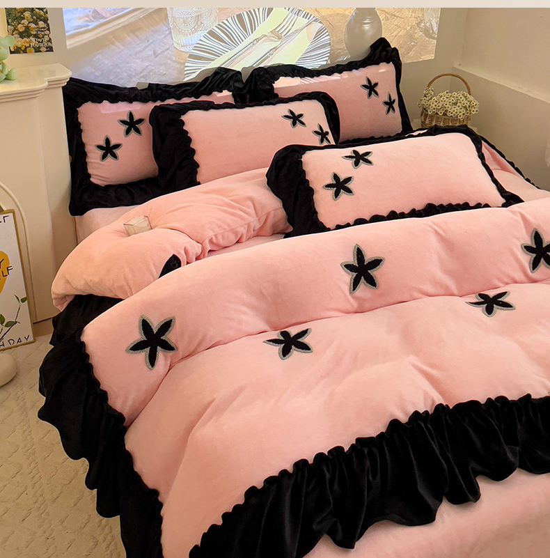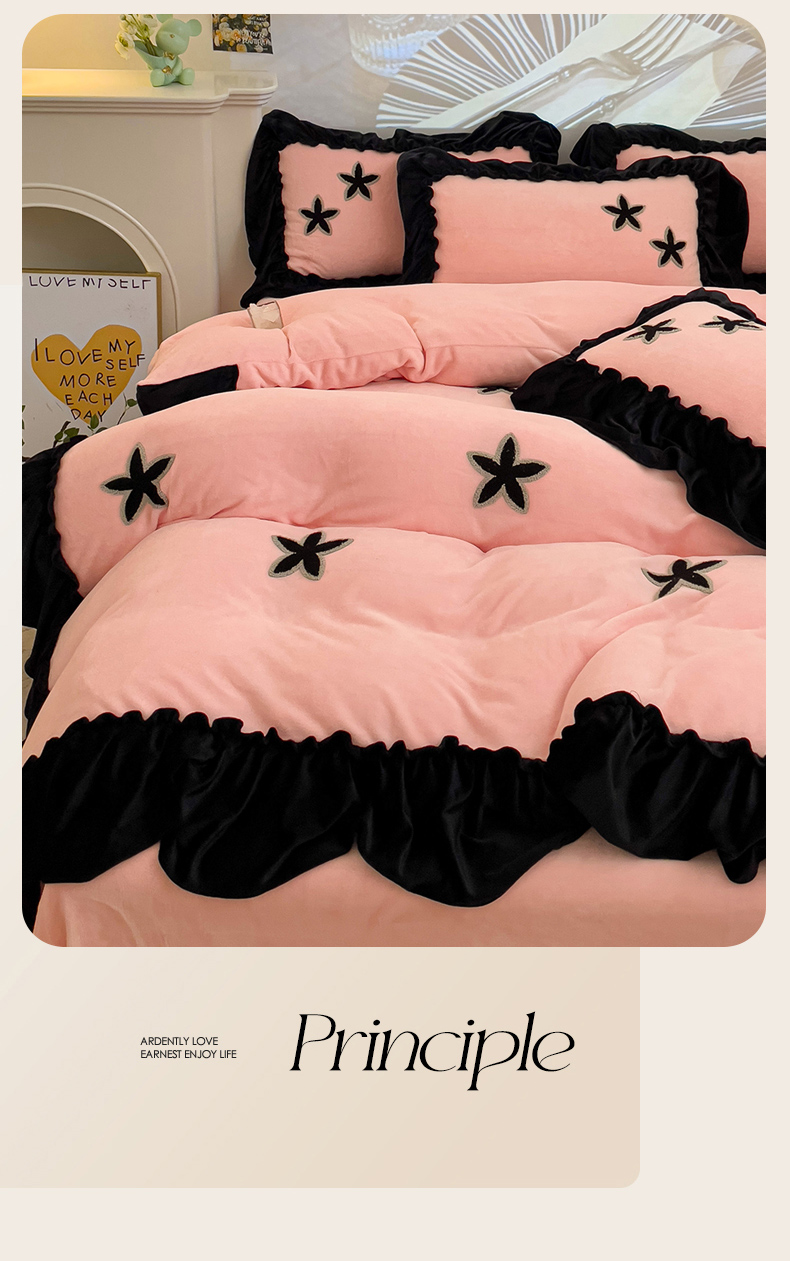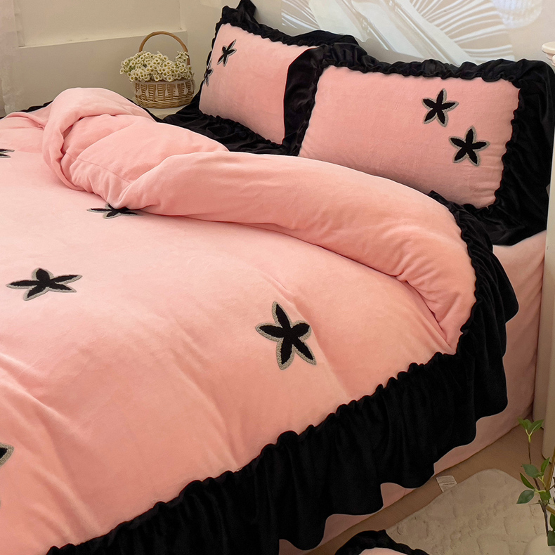 当前位置: 91家纺网 > 商品网购 > 床品套件 > 四件套 > 牛奶绒四件套 > 你好美丽 2025新款牛奶绒A类200克星愿毛巾绣花边四件套 星愿粉