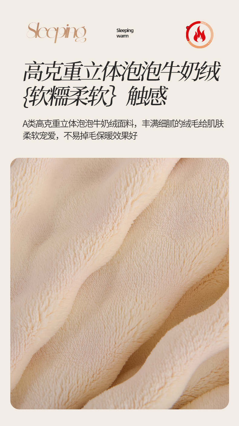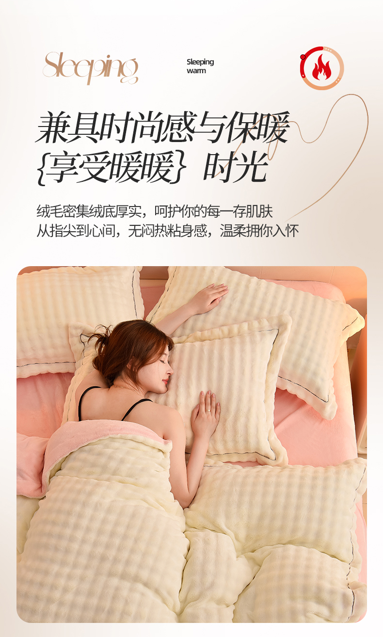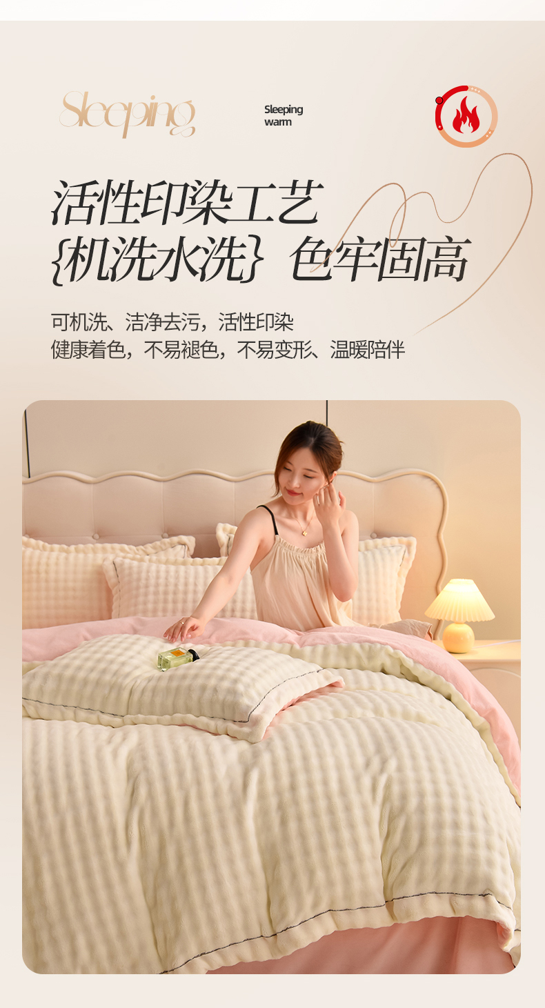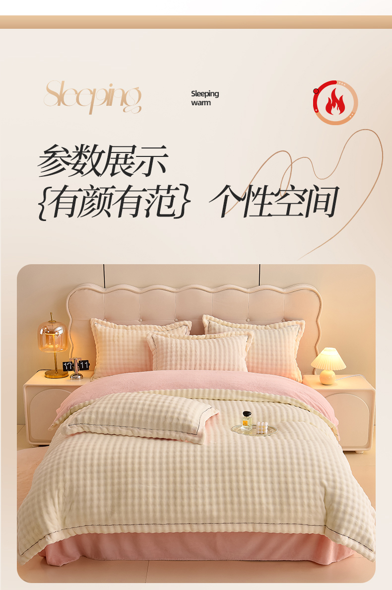 商品名称:米奈家居 2024新款A类高克重泡泡牛奶绒四件套 白拼粉