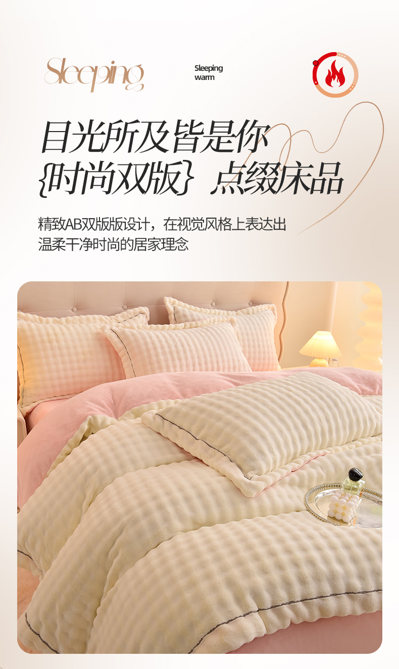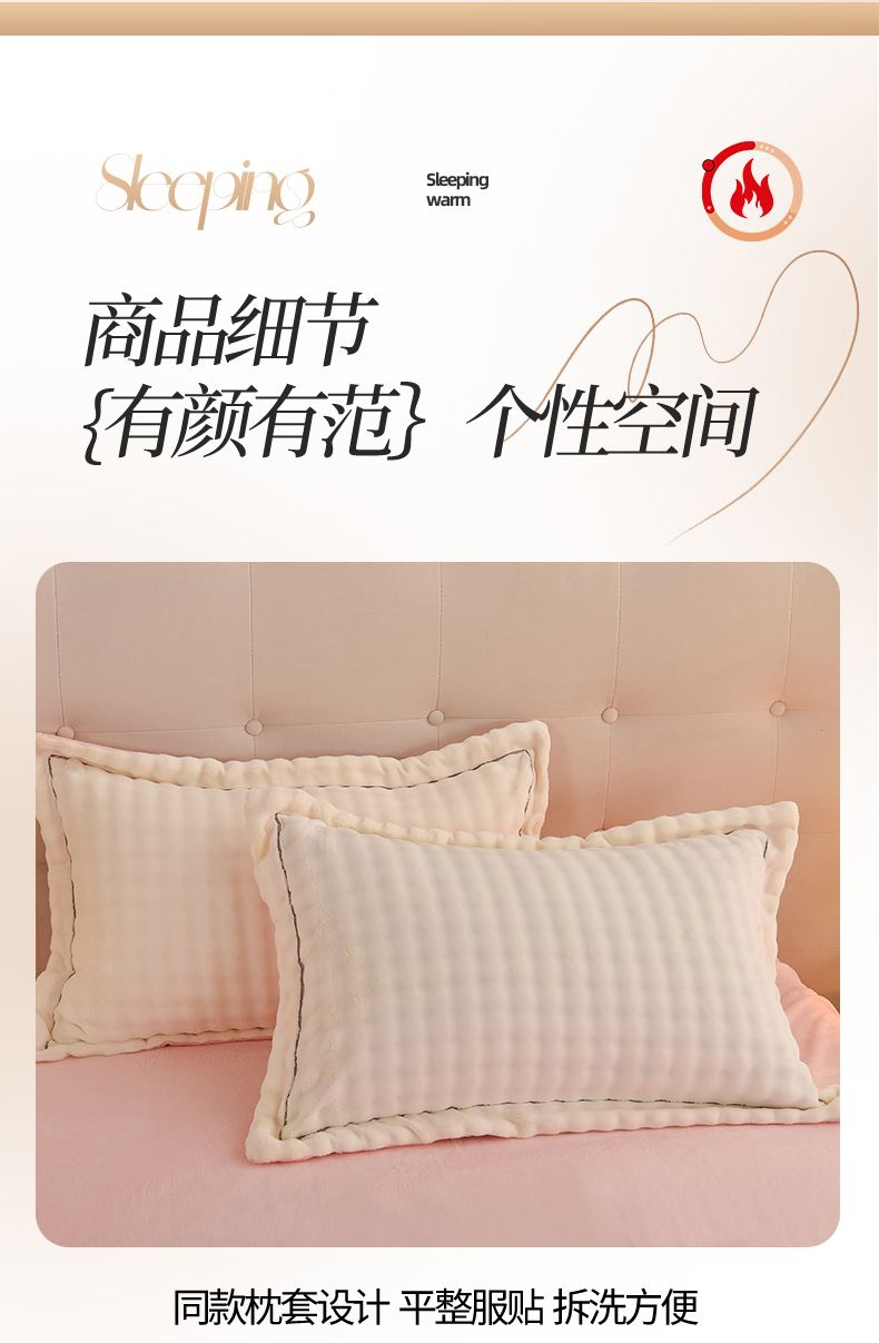米奈家居 2024新款A类高克重泡泡牛奶绒四件套 白拼粉