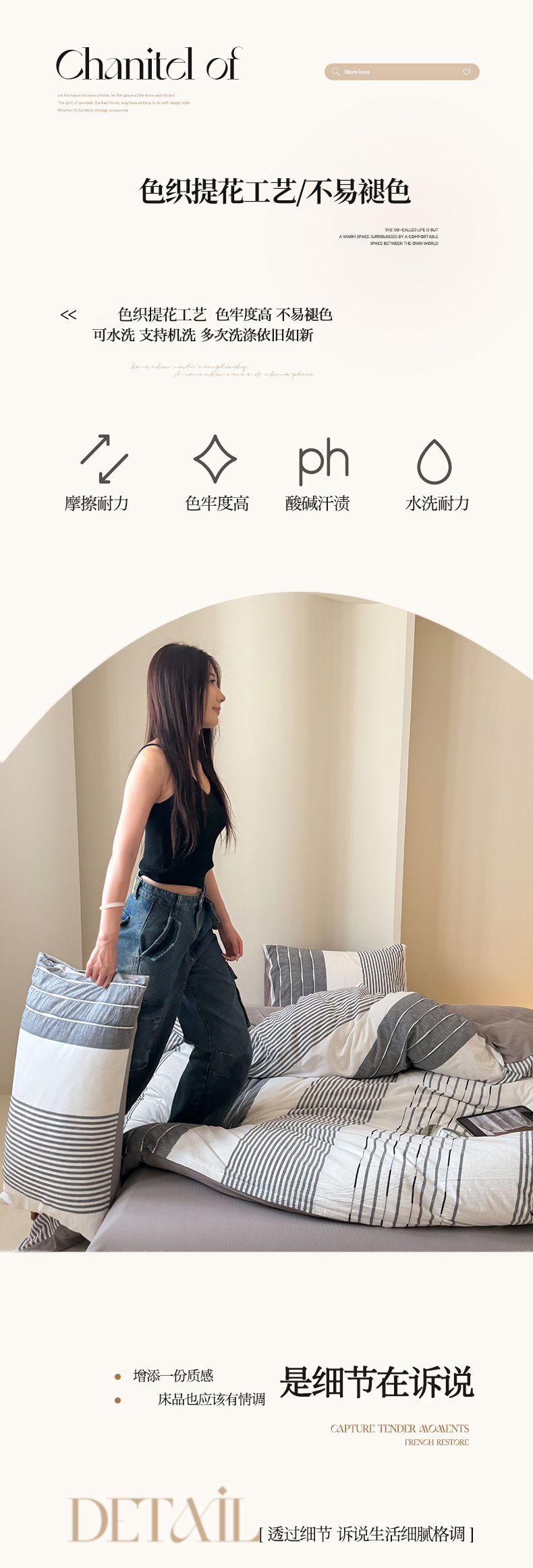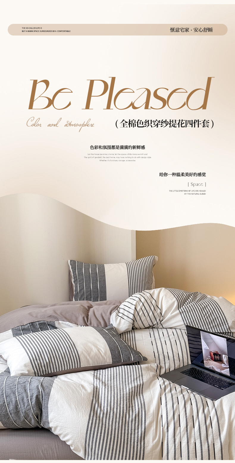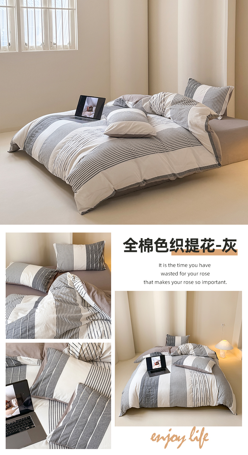 当前位置: 91家纺网 > 商品网购 > 床品套件 > 四件套 > 全棉普通四件套 > 山舍家居 2024新款全棉色织提花四件套系列二 玫你不行-黑灰