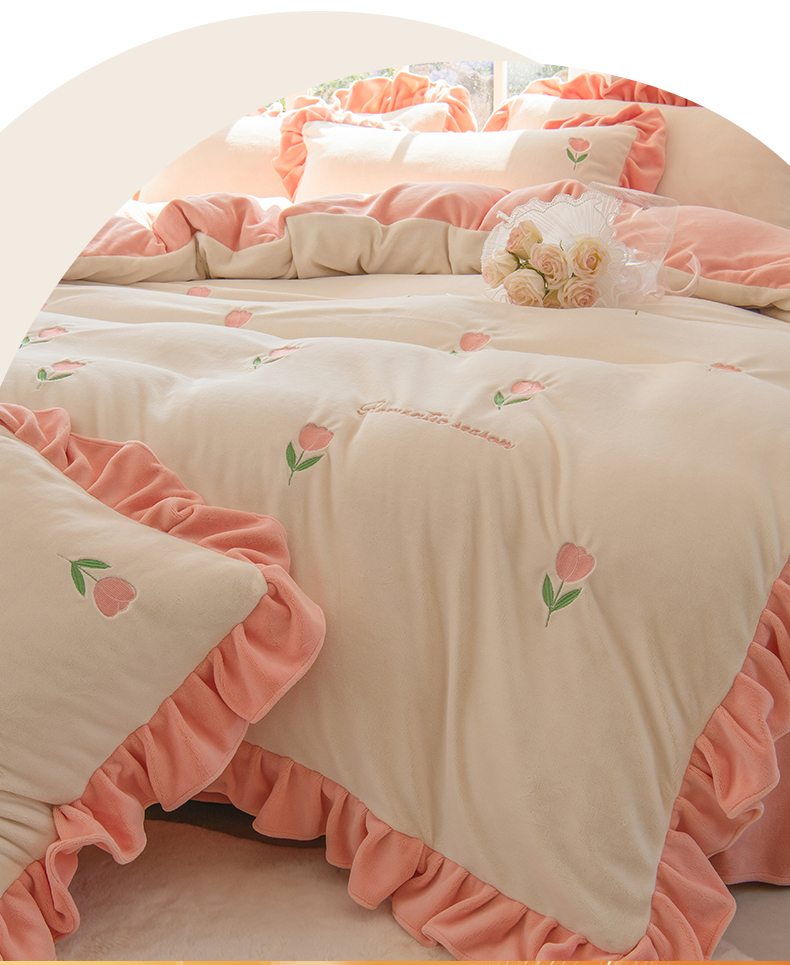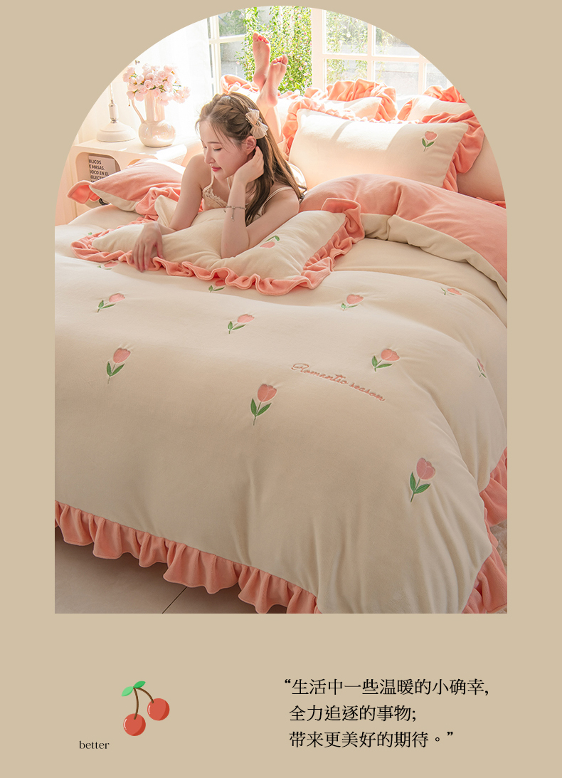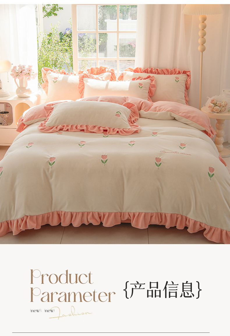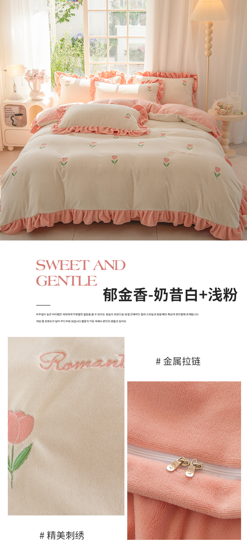 当前位置: 91家纺网 > 商品网购 > 床品套件 > 四件套 > 牛奶绒四件套 > 眷恋家纺 2024新款牛奶绒花边郁金香花卉刺绣四件套 郁金香-奶昔白+浅粉