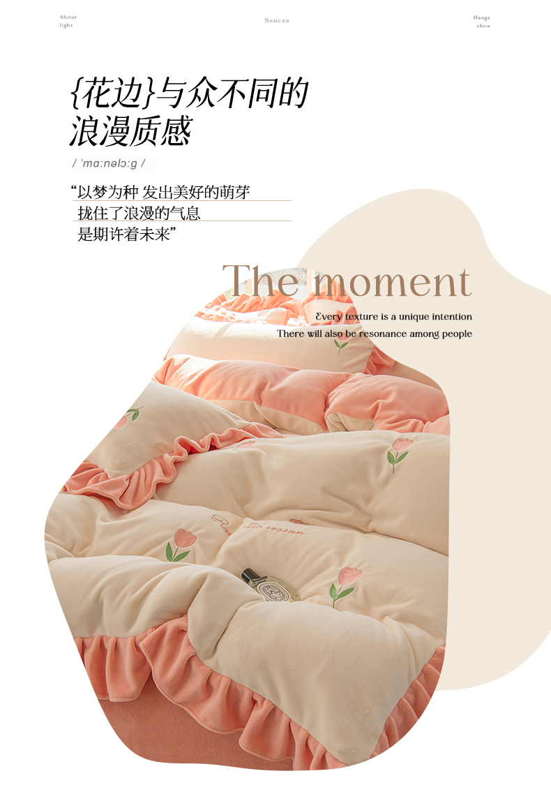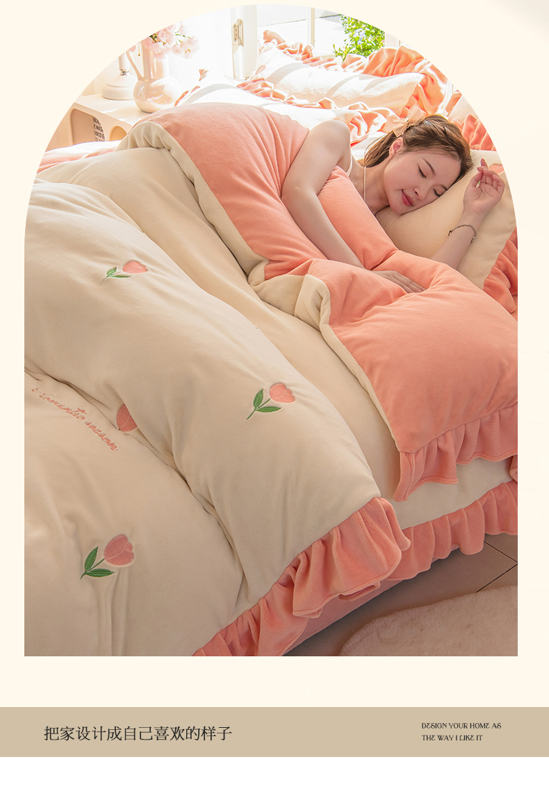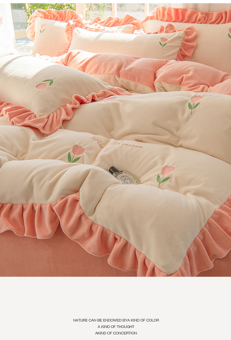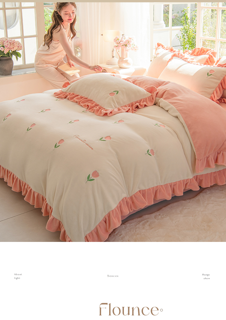 当前位置: 91家纺网 > 商品网购 > 床品套件 > 四件套 > 牛奶绒四件套 > 眷恋家纺 2024新款牛奶绒花边郁金香花卉刺绣四件套 郁金香-奶昔白+浅粉