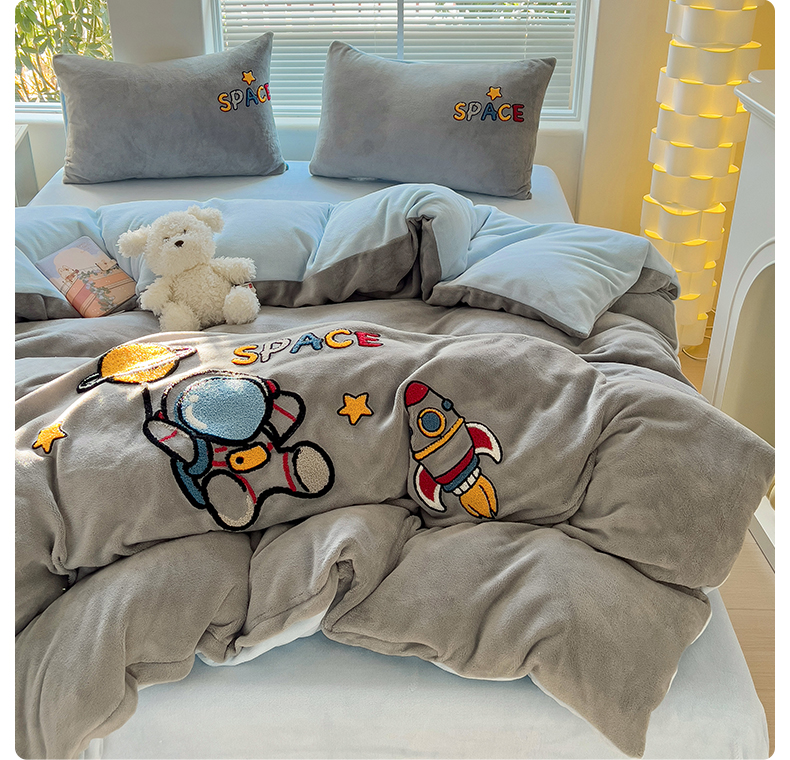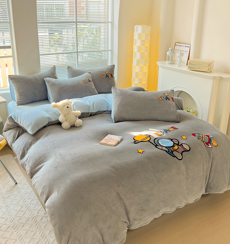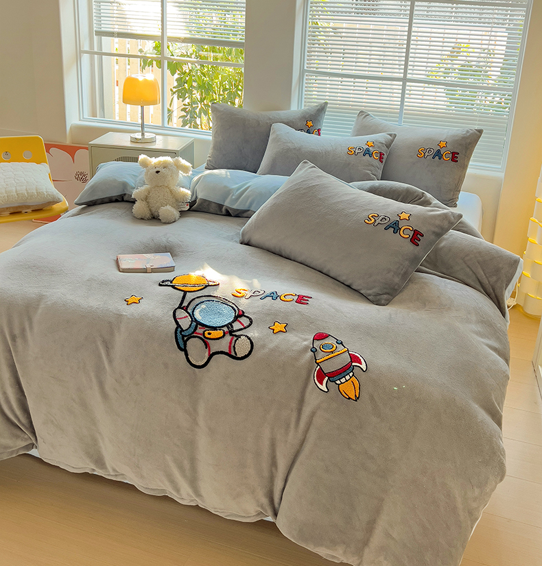卡普二店 2024新款高克重牛奶绒毛巾绣四件套 星际旅途