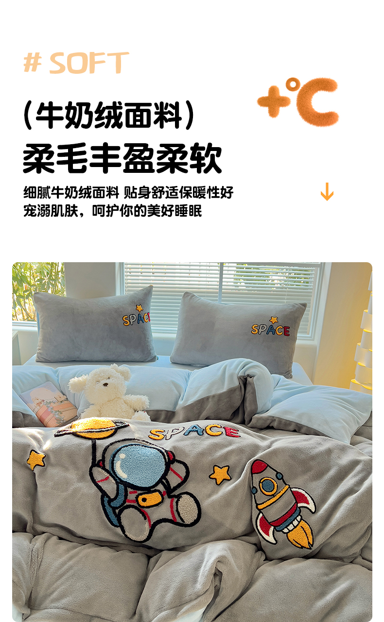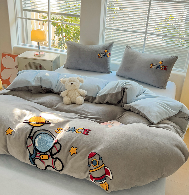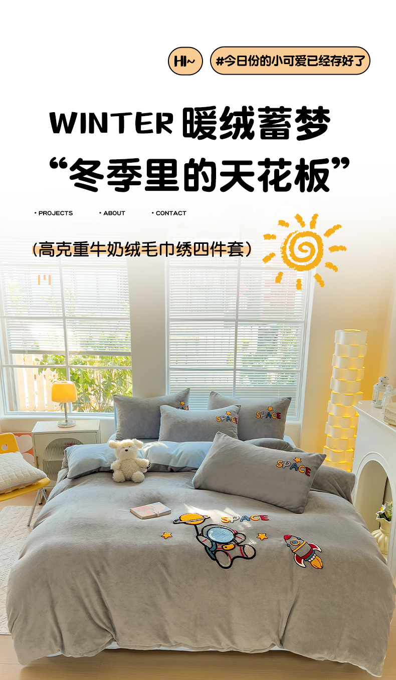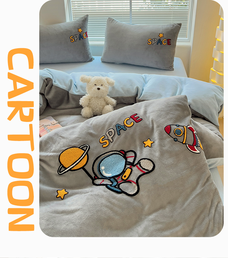 商品名称:卡普二店 2024新款高克重牛奶绒毛巾绣四件套 星际旅途