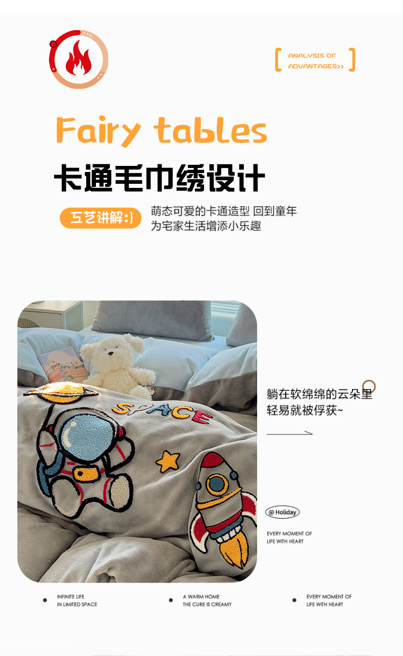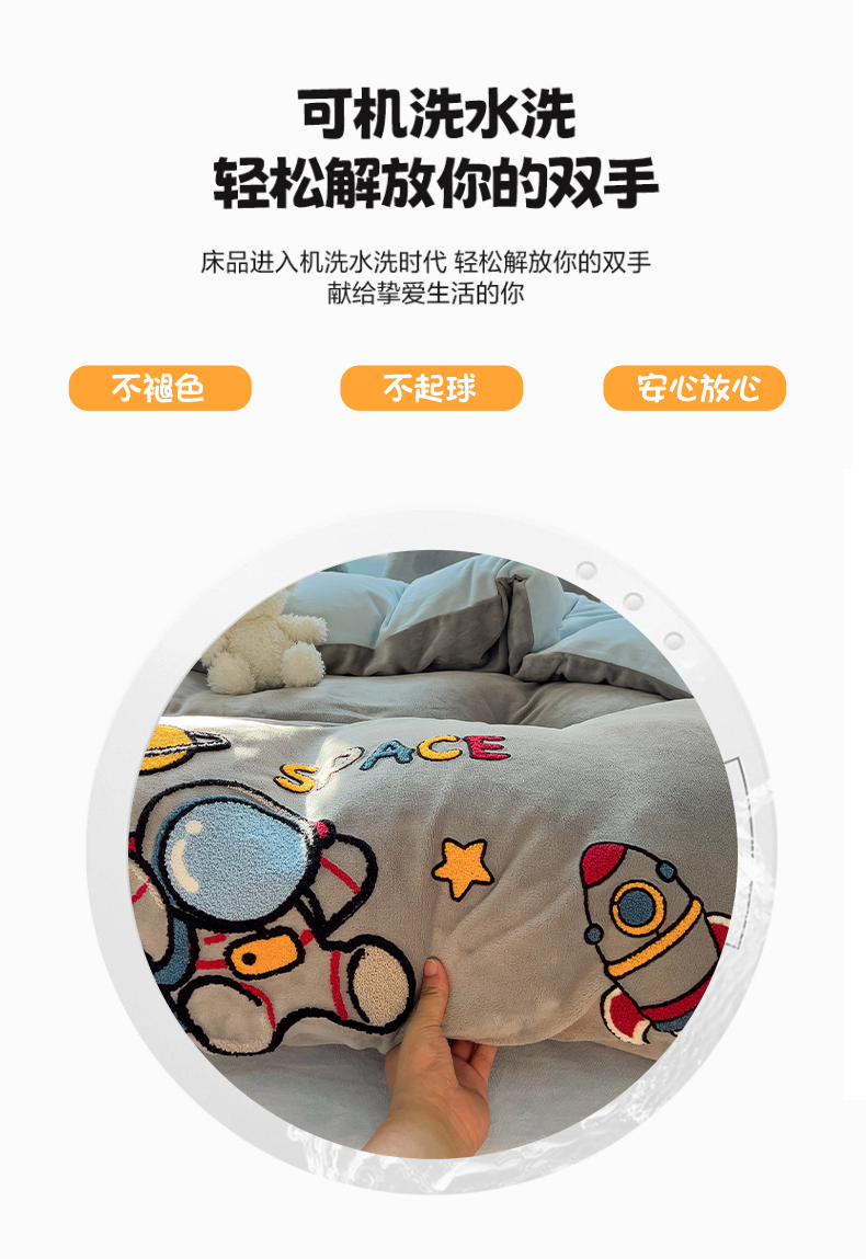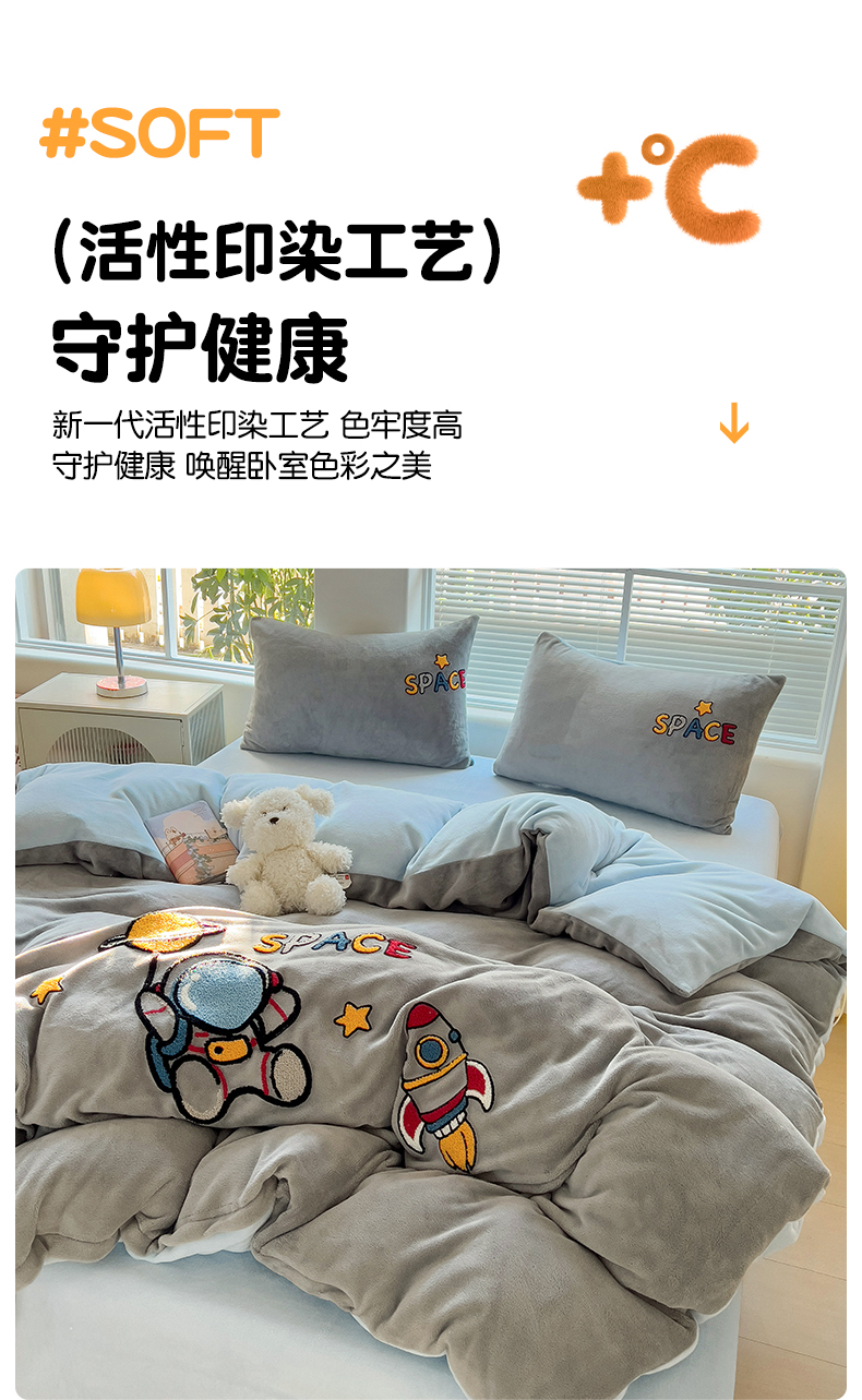 商品名称:卡普二店 2024新款高克重牛奶绒毛巾绣四件套 星际旅途